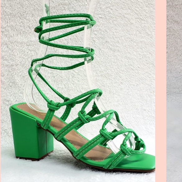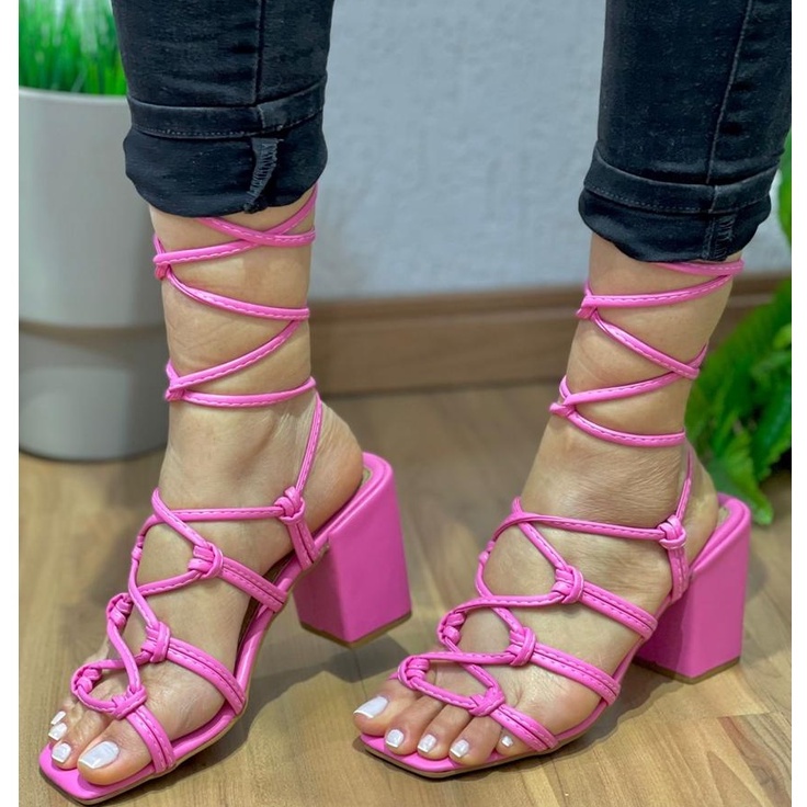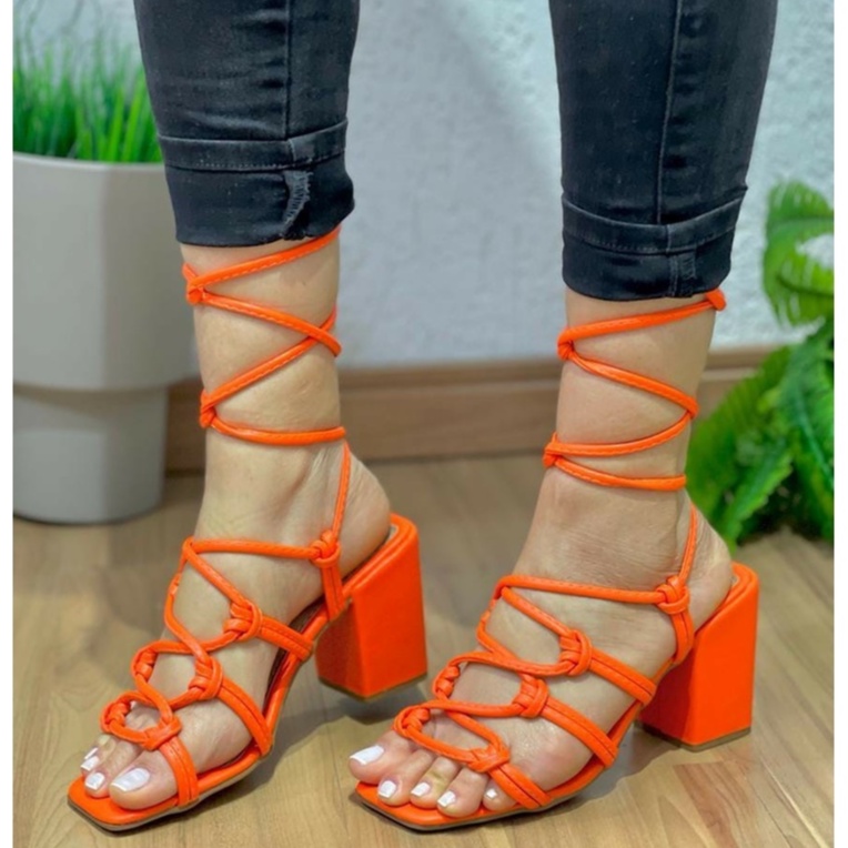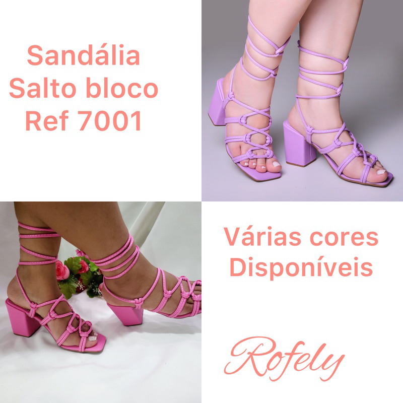 Sandália Feminina Com Salto De Bloco e Amarração Gladiadora Salto Grosso Tiras Confortável Ref 7001