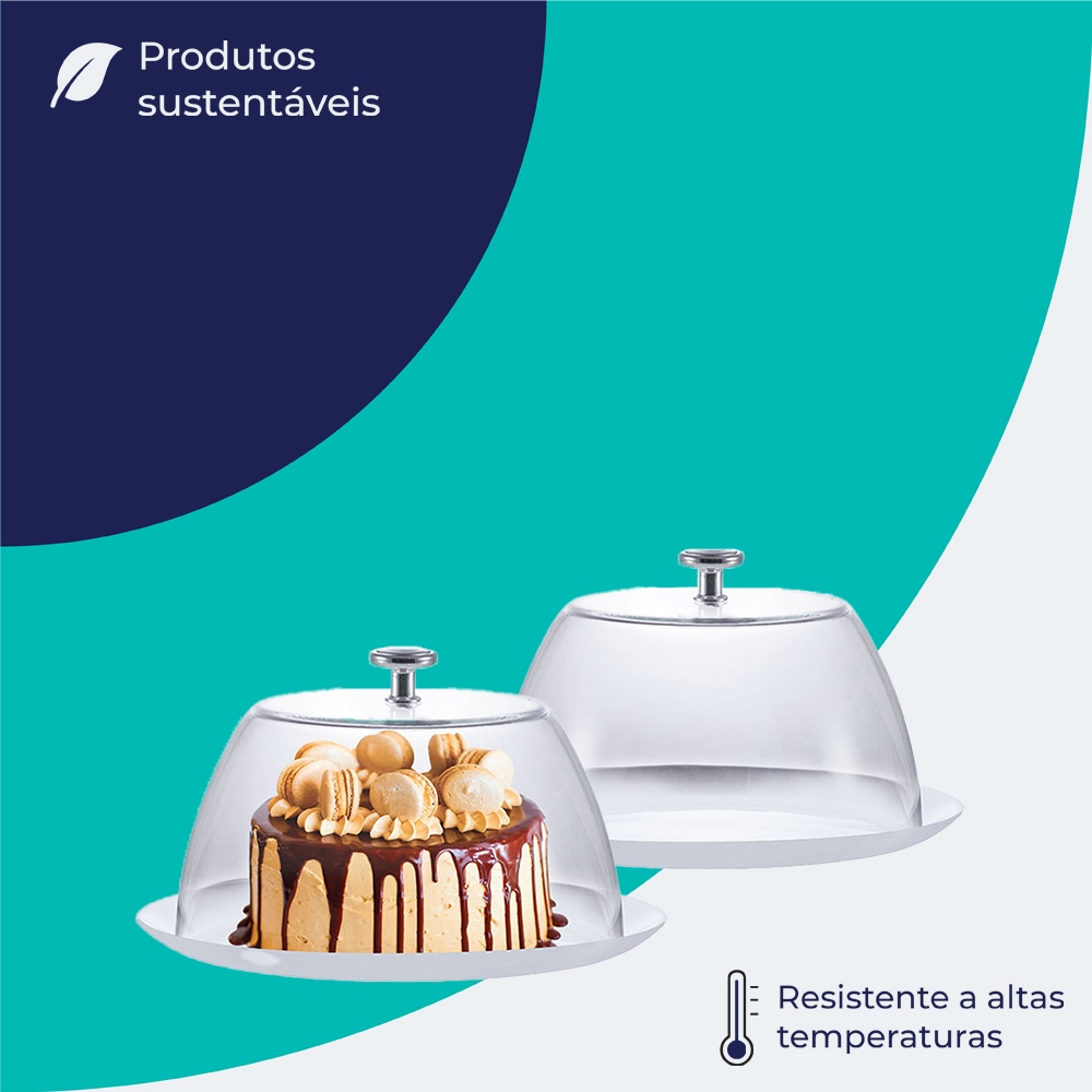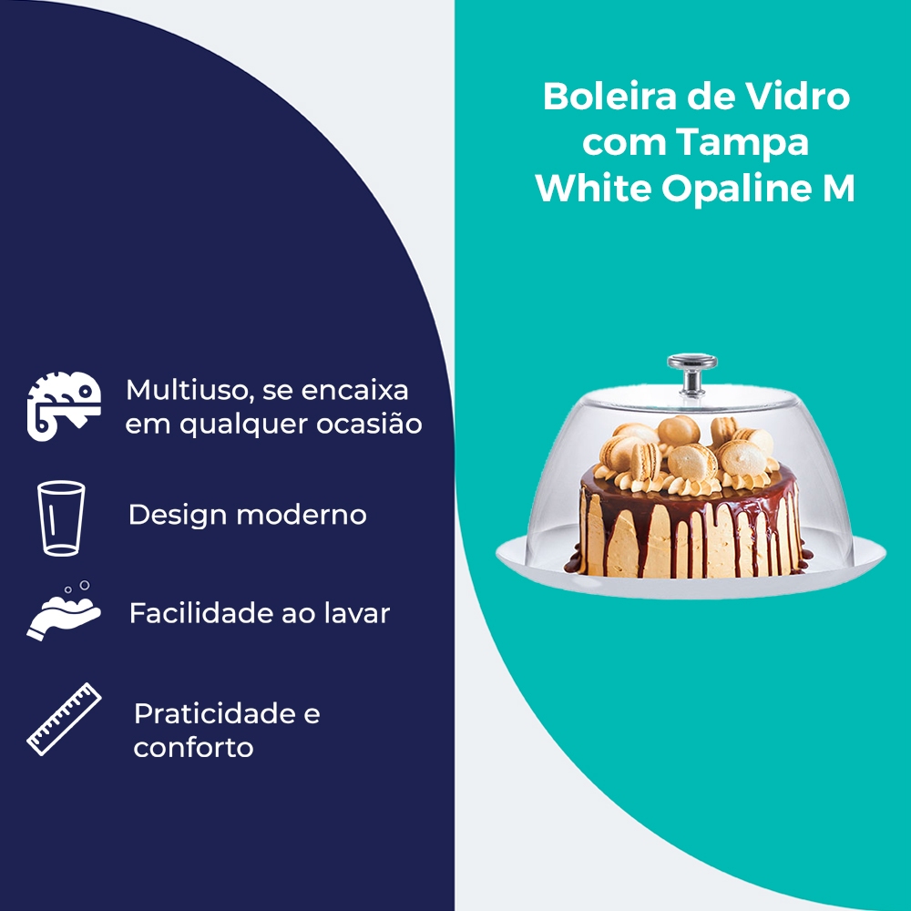 Boleira de Vidro com Tampa White Opaline M para Bolos e Sobremesas - Ruvolo