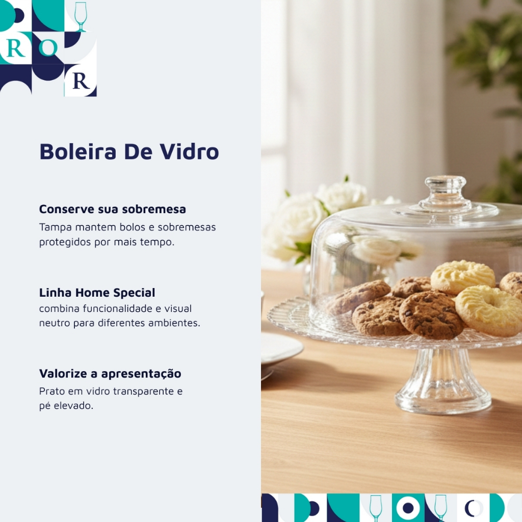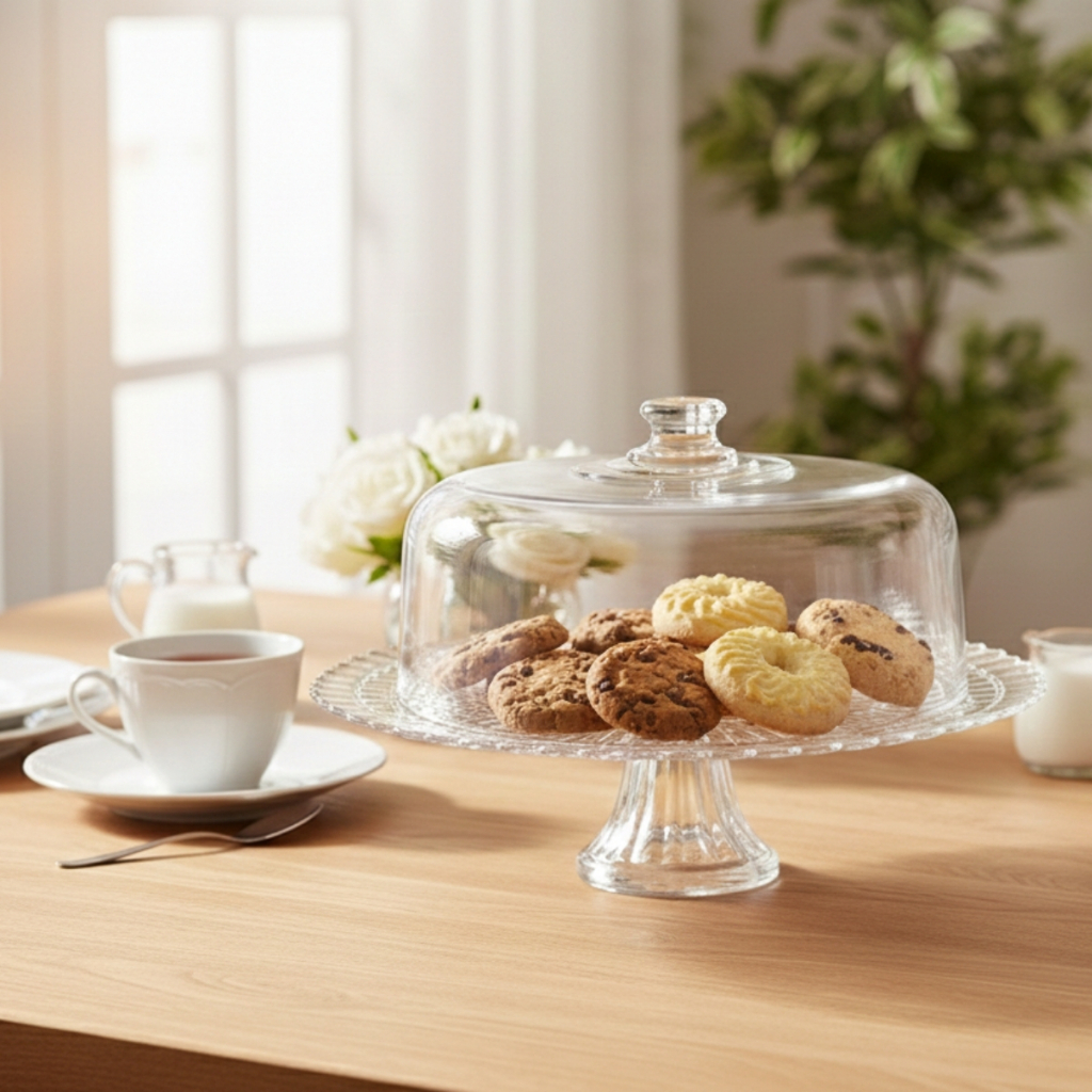 Boleira Vidro Pé Tampa Acrílica Verona Bolos Sobremesas Ruvolo
