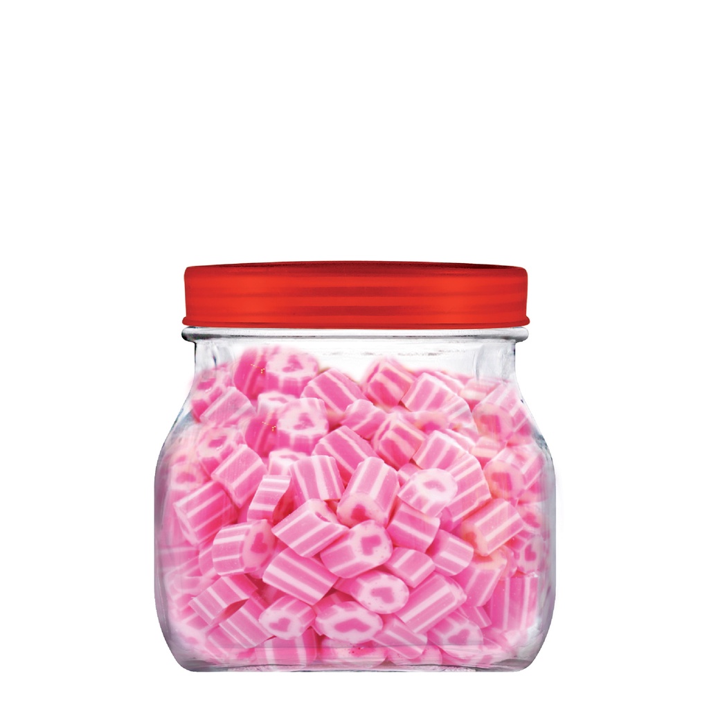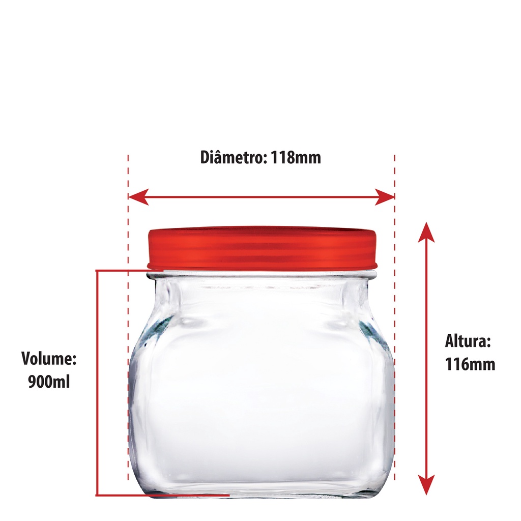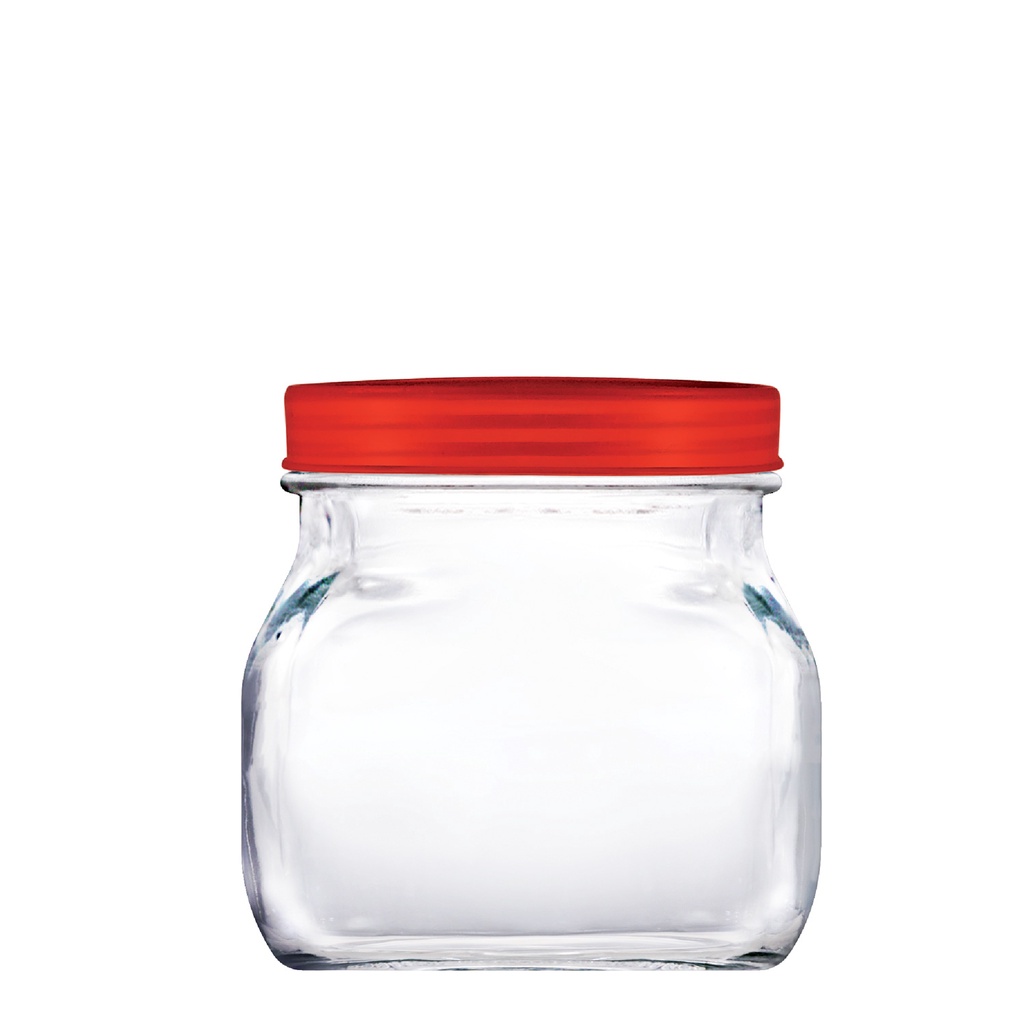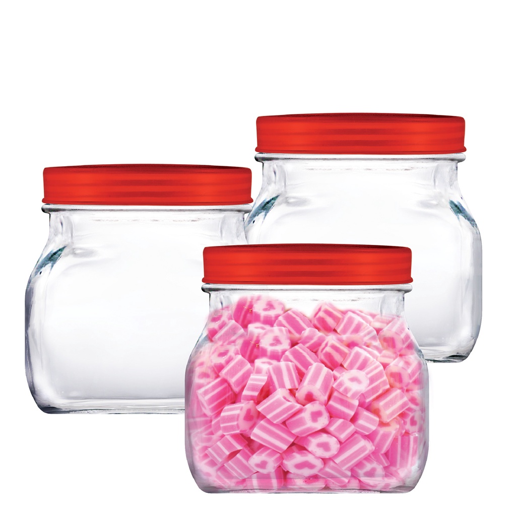 Pote de Vidro Quadrado P Tampa de Plástico Vermelho 3 Peças - Ruvolo