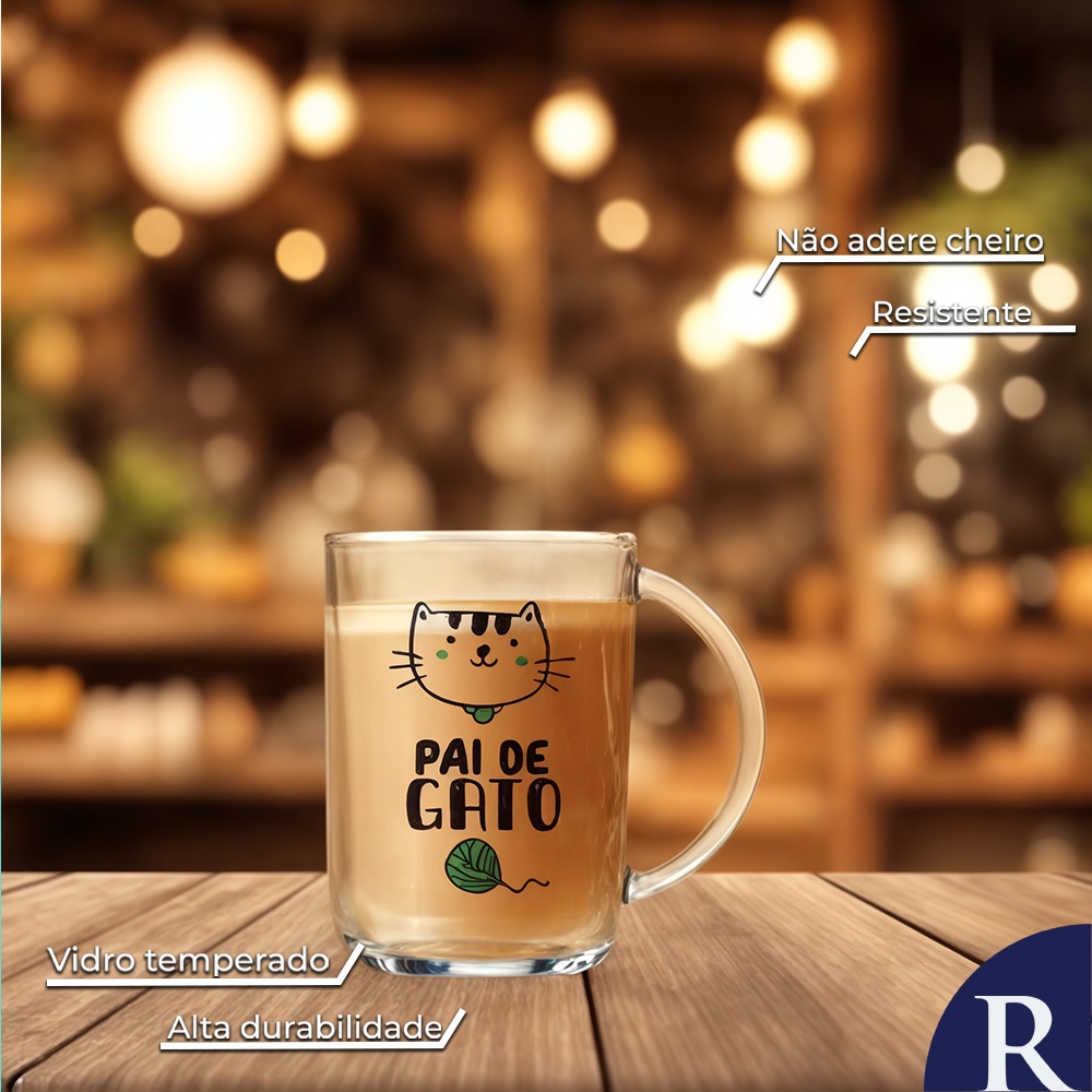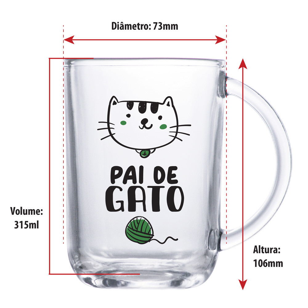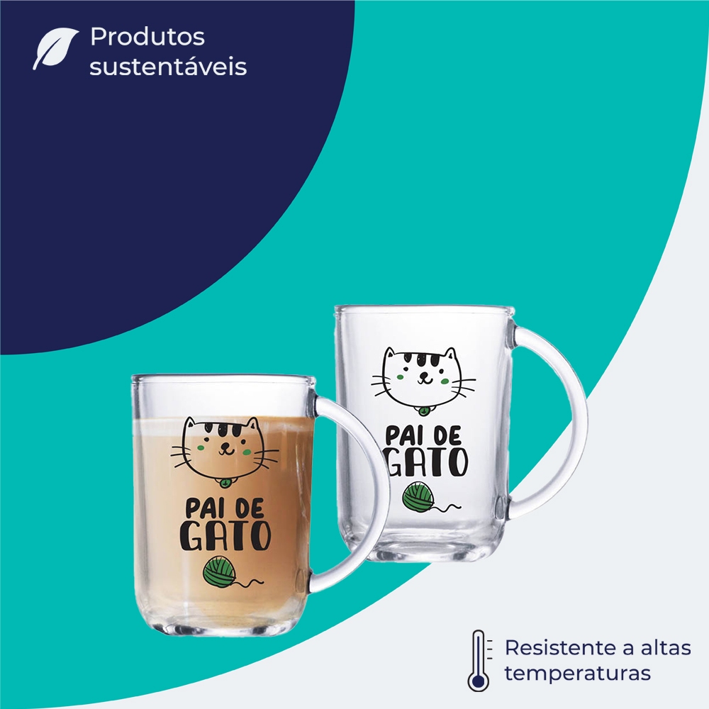 Caneca Para Café Verona, Caneca de Vidro Chá e Café Estampa Pai de Gato 315ml - Ruvolo