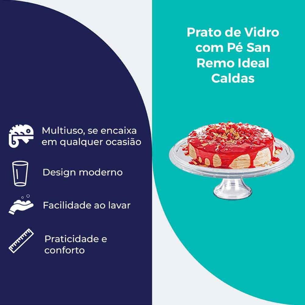 Prato de Vidro com Pé, Boleira e Petisqueira San Remo ideal para Sobremesas com Calda - Ruvolo