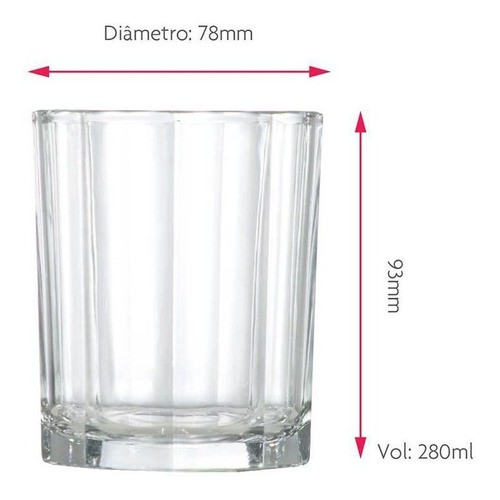 Copos de Vidro Octon On The Rocks para Whisky 280ml, Jogo Com 6 Peças - Ruvolo