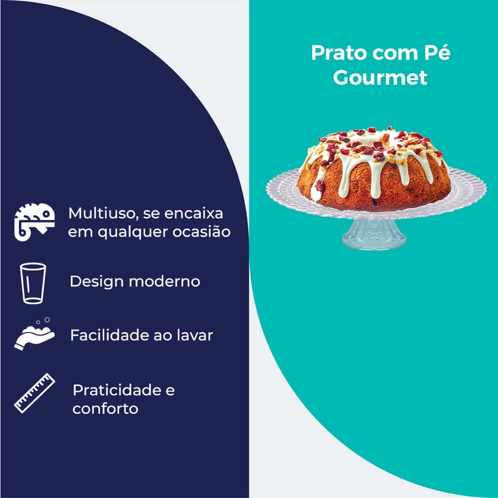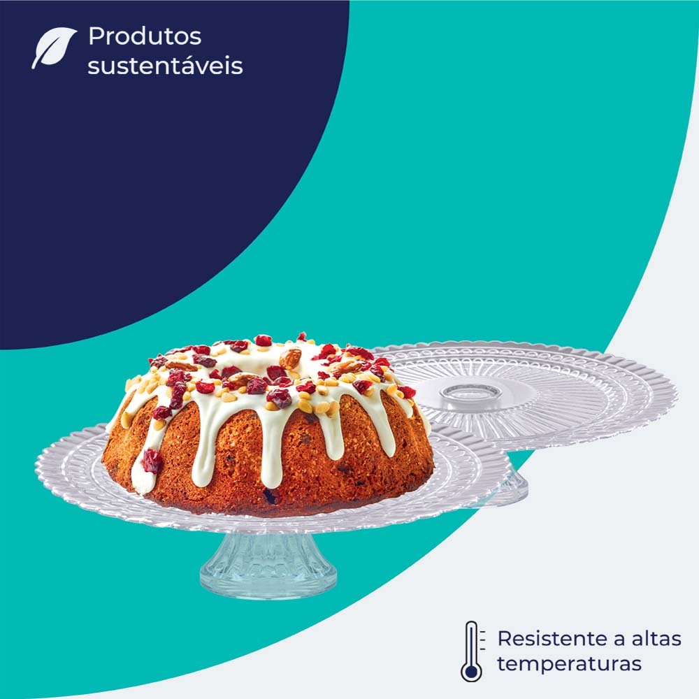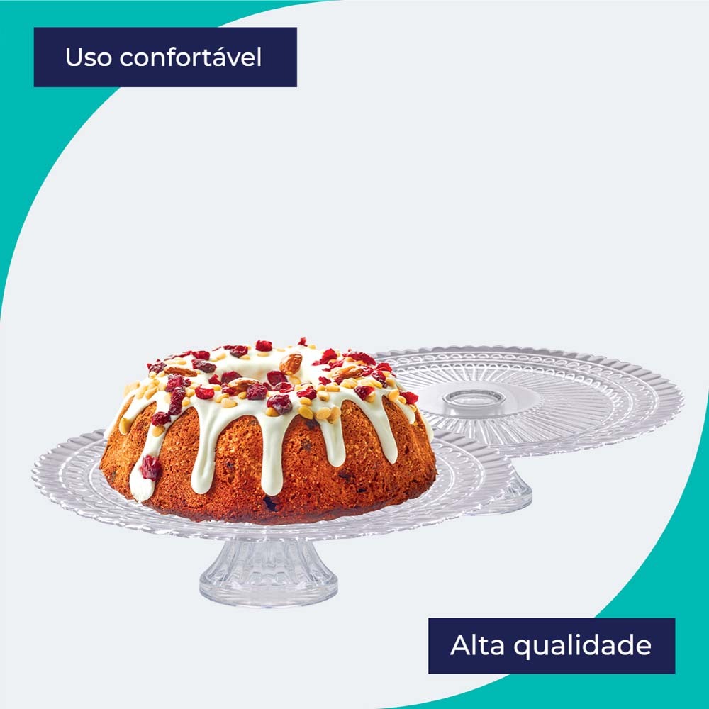 Prato para Bolo com Pé de Vidro 32cm Linha Viena Modena Sobremesa Doces - Ruvolo
