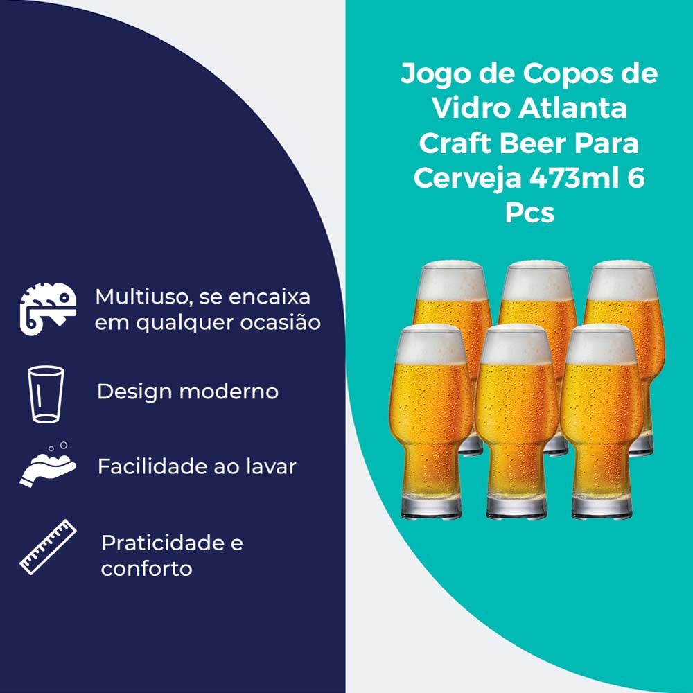 Jogo de Copo de Vidro Atlanta Craft Beer Cerveja 6pcs, 473ml - Ruvolo
