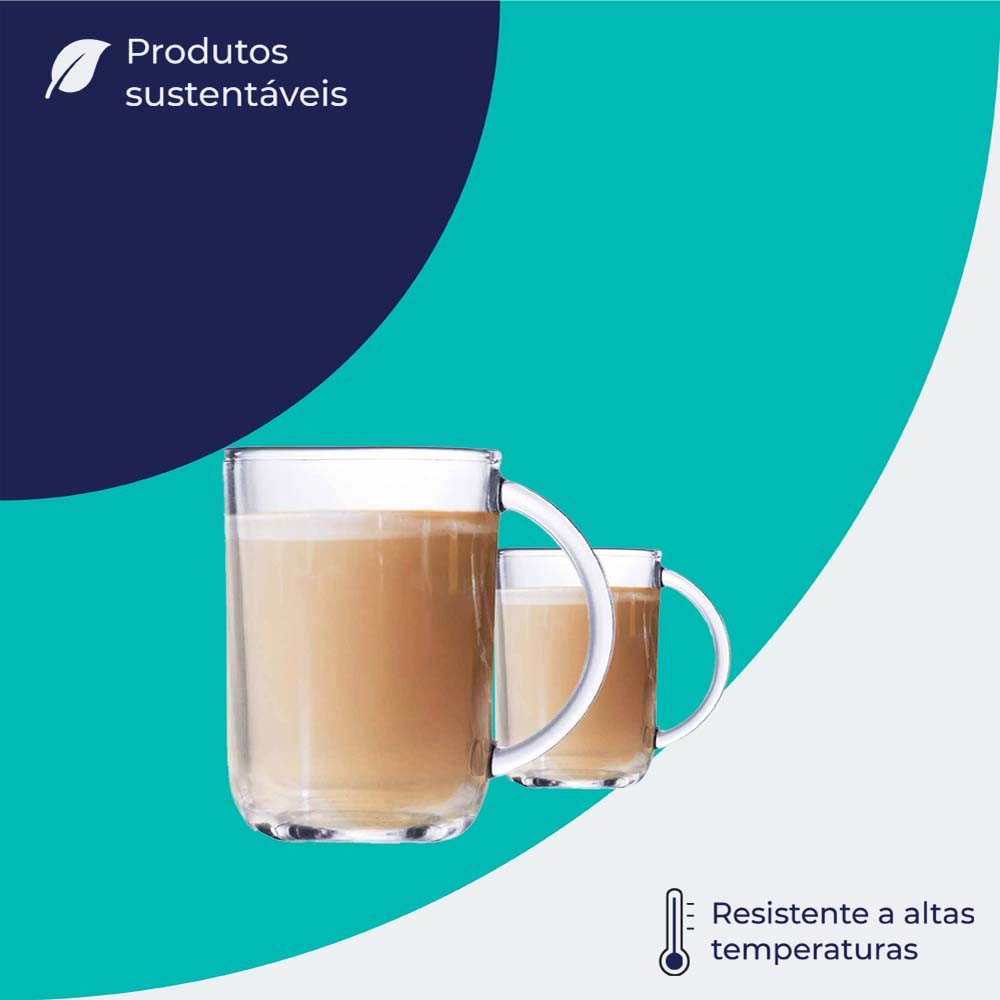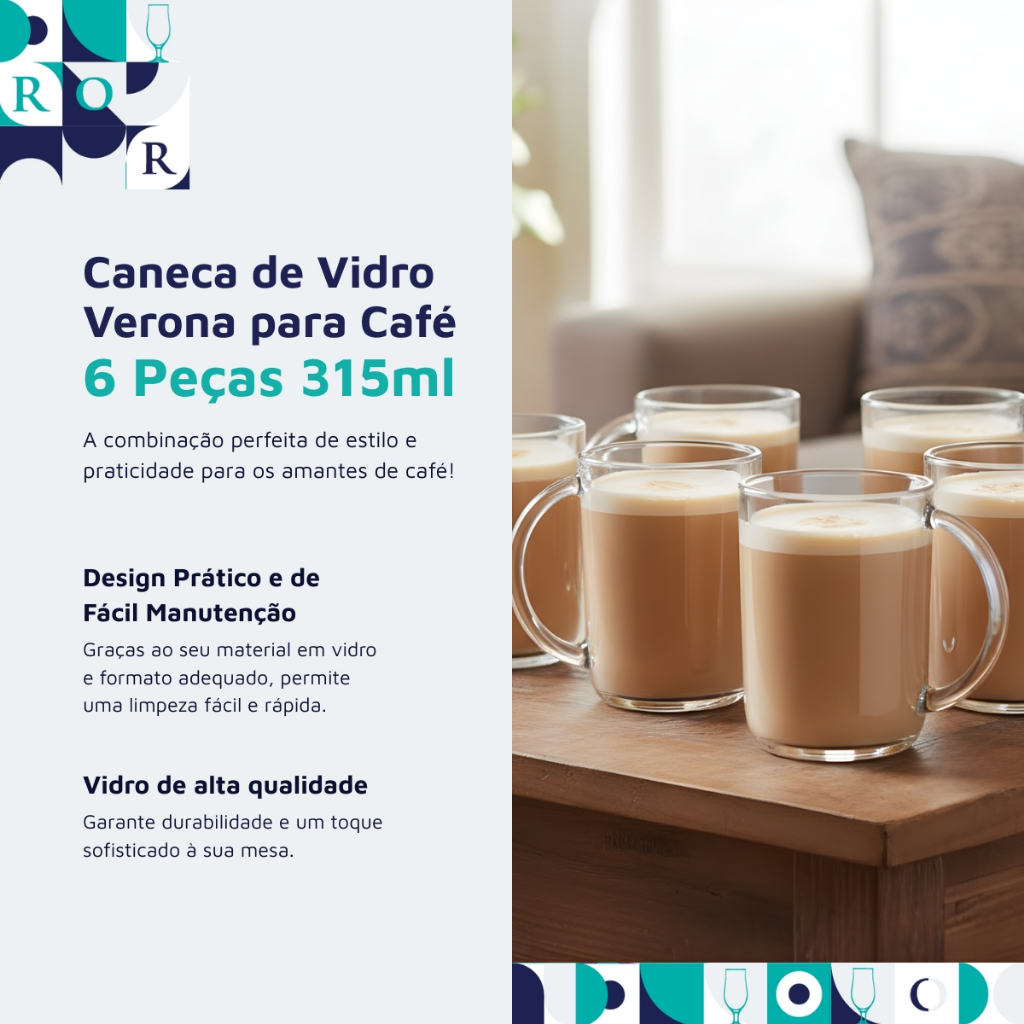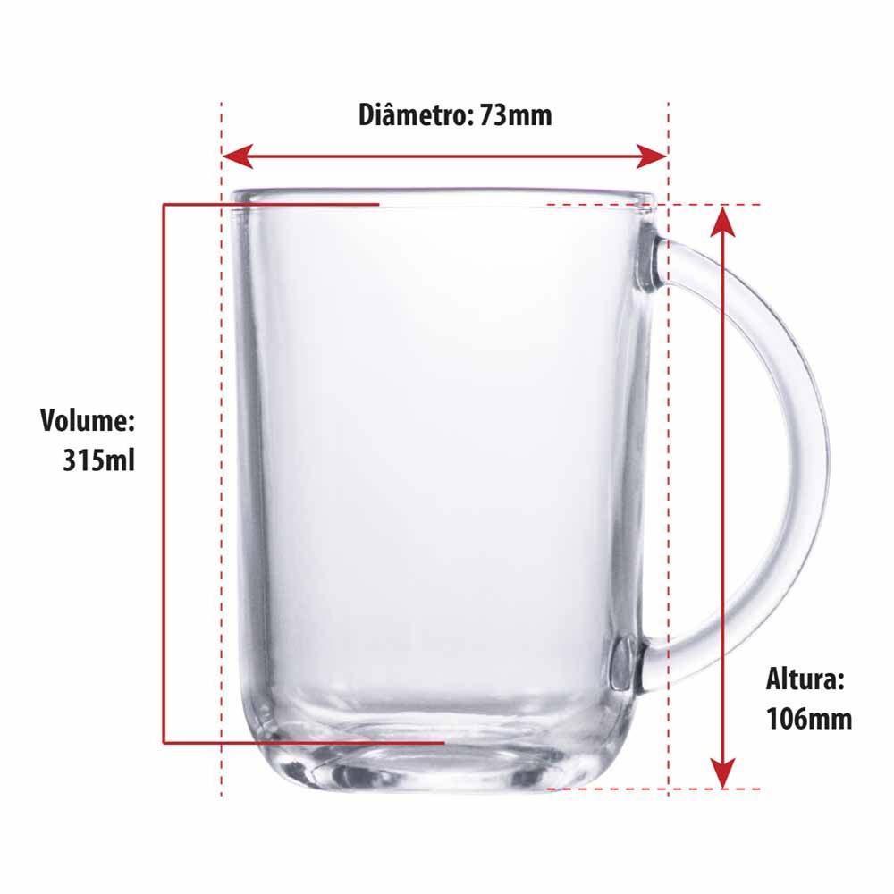 Canecas Para café e Chá Jogo Caneca de Vidro Verona para Café 6 Peças 315ml Ruvolo