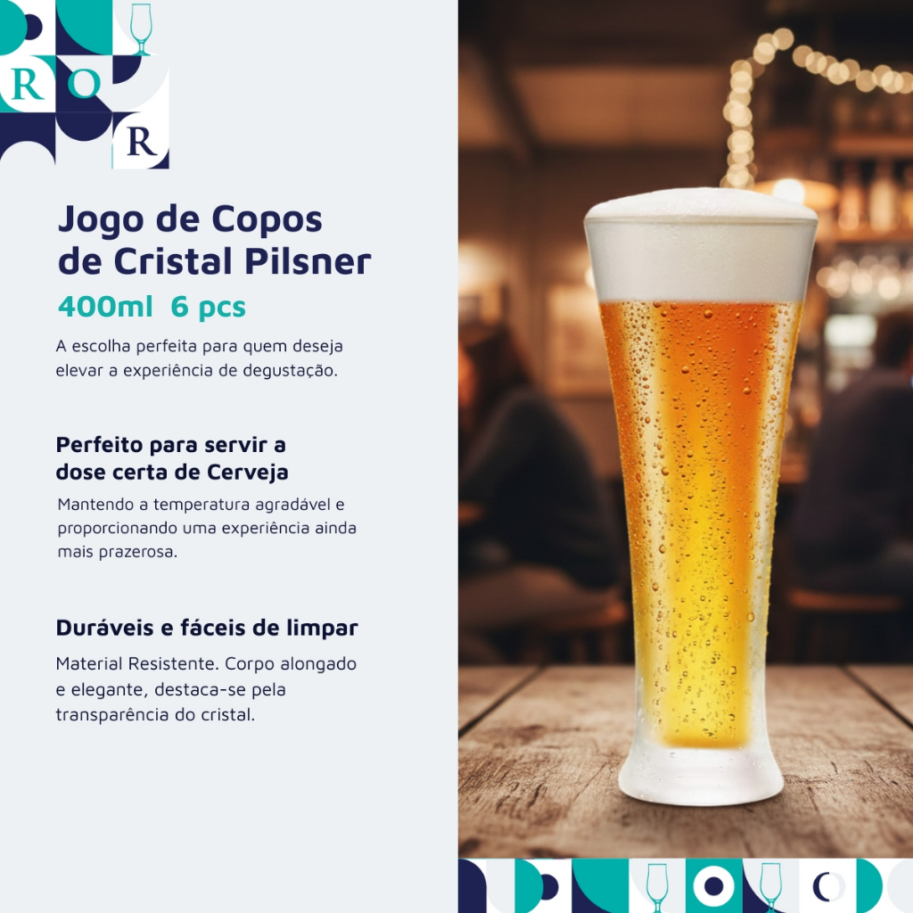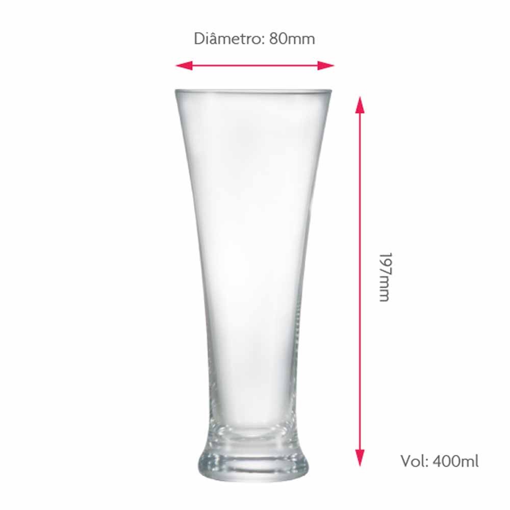 Jogo de Copos de Cristal Pilsner Cerveja 400ml 6 Peças Ruvolo