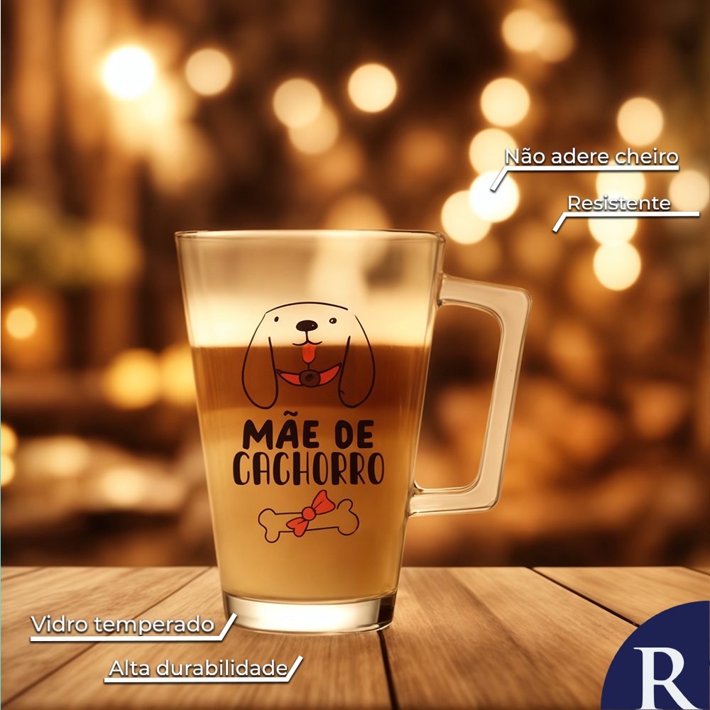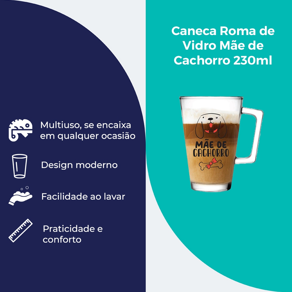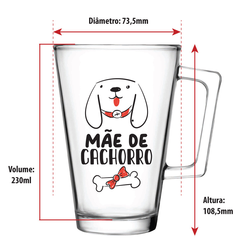 Caneca Para Café e Chá Modelo Roma, Canecas de Vidro Estampa Mãe de Cachorro 230ml - Ruvolo