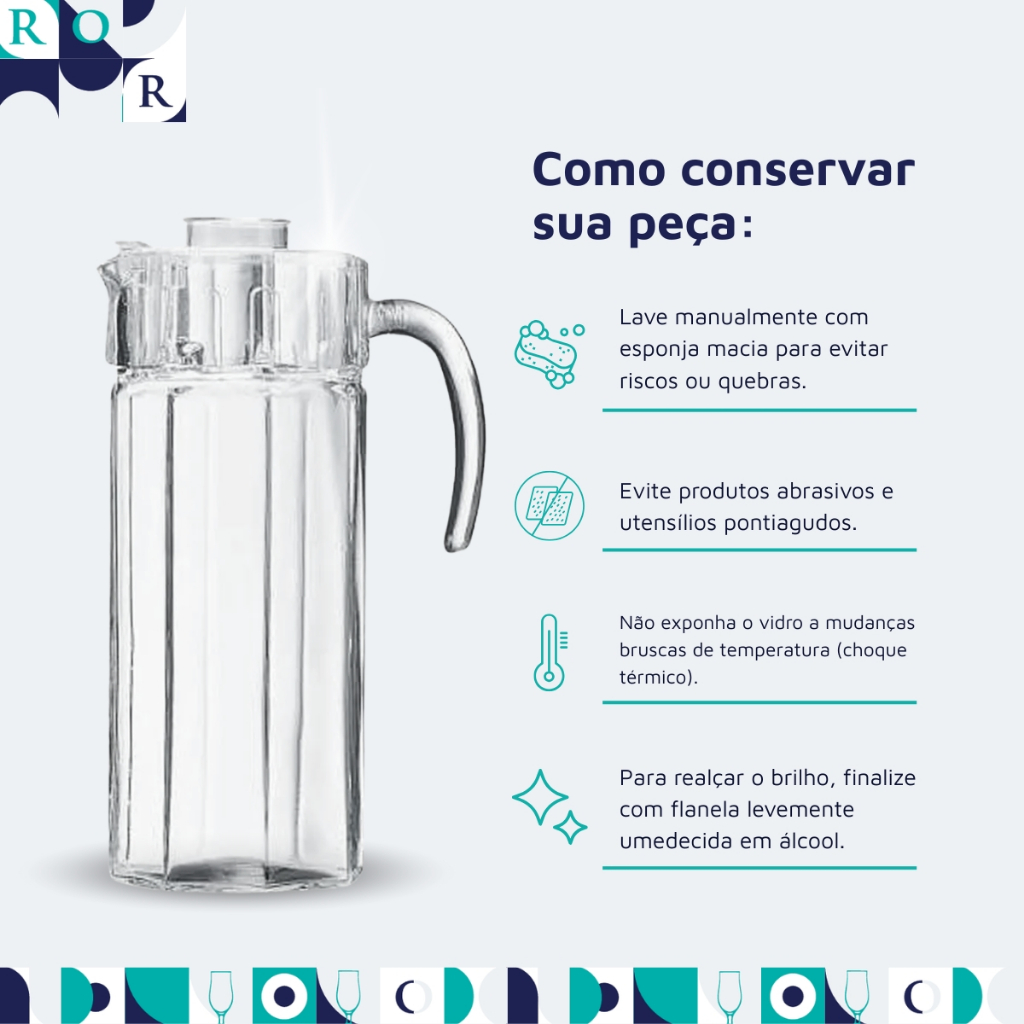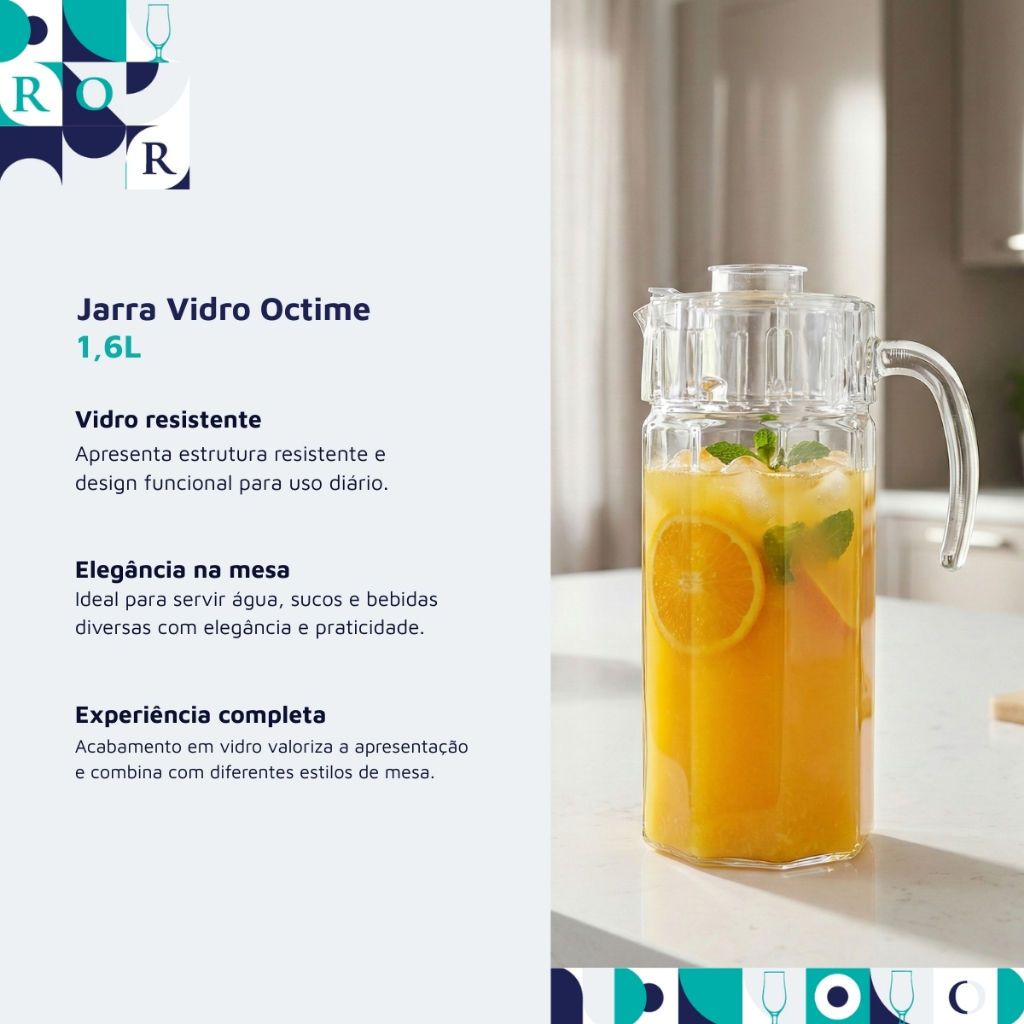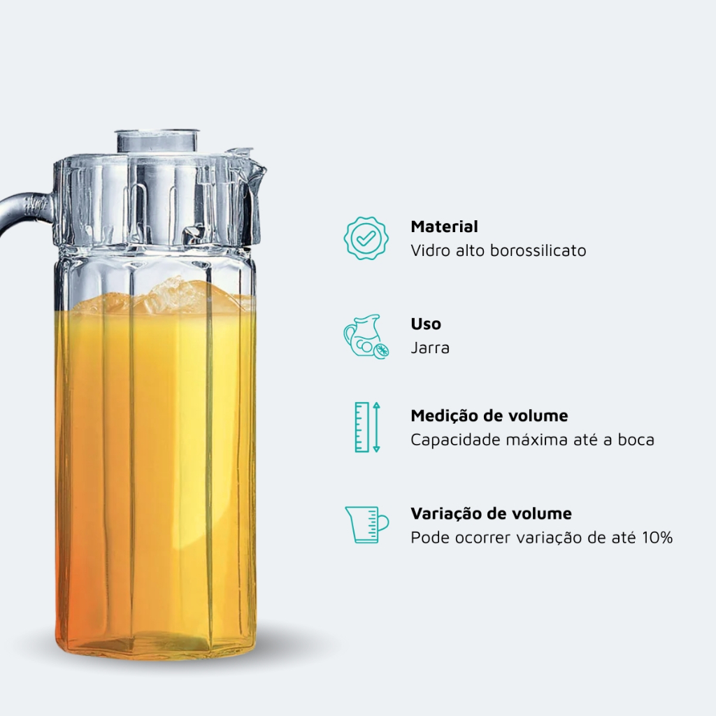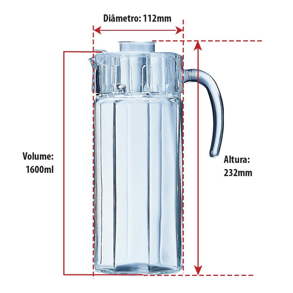 Jarra Vidro Octime Tampa Suco Água Chá Bebidas Geladeira Escritório Resistente 1,6L Ruvolo