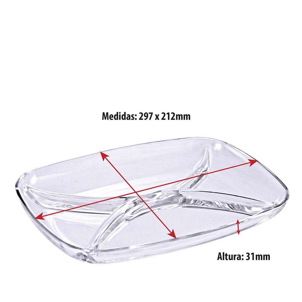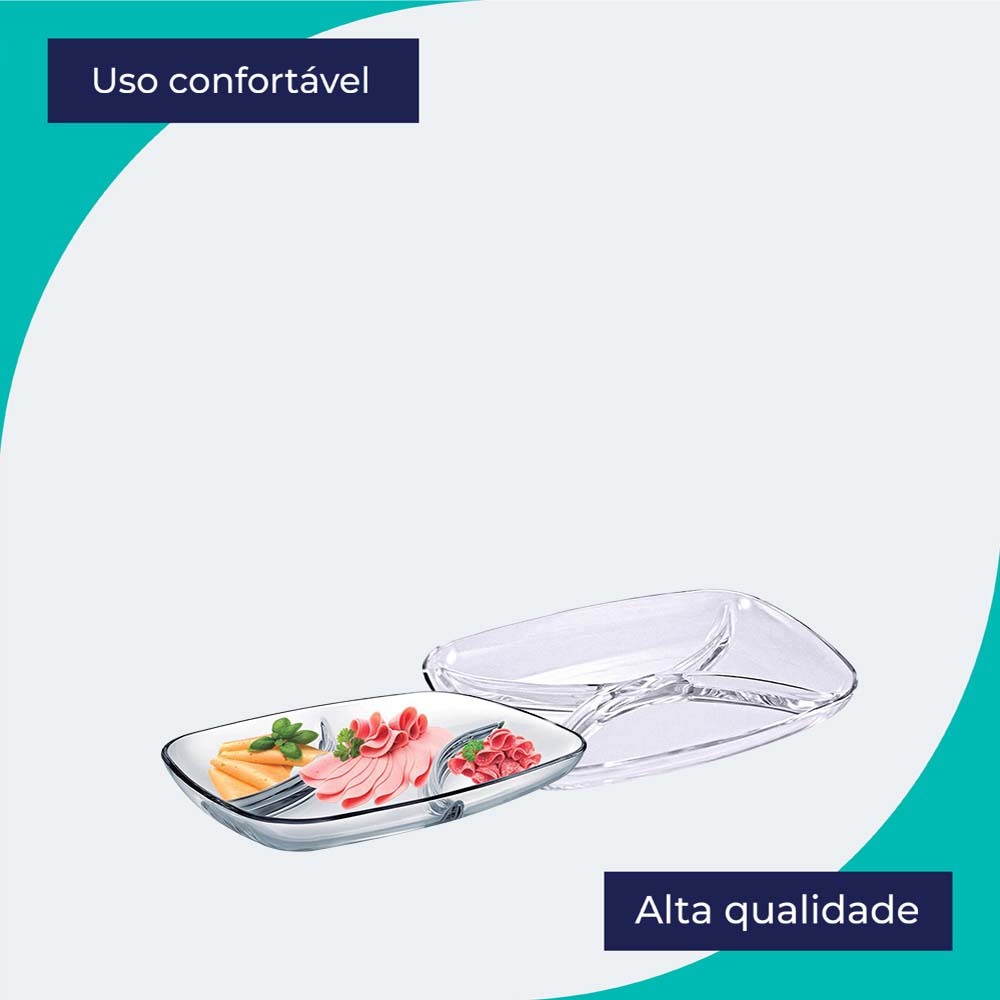 Petisqueira de Vidro Parma Multiúso G com 3 Divisões - Ruvolo