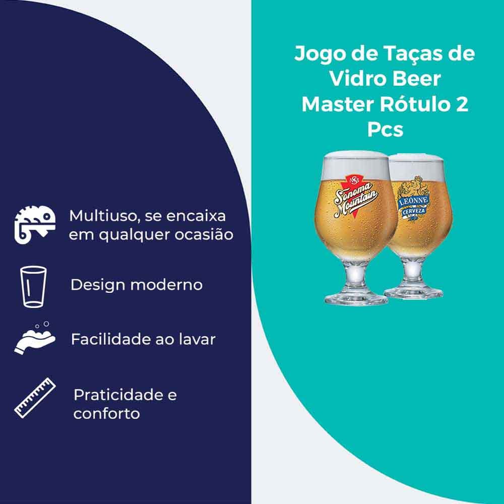 Jogo de Taça de Vidro para Cerveja Beer Master 2 Peças, 380ml - Ruvolo