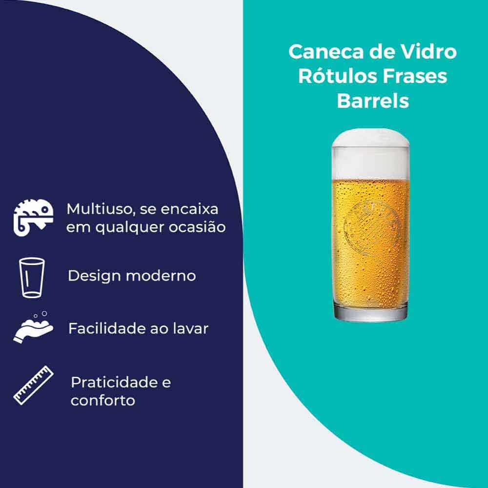 Caneca de Chopp Barrels, Caneca de Vidro com Frases 300ml - Ruvolo