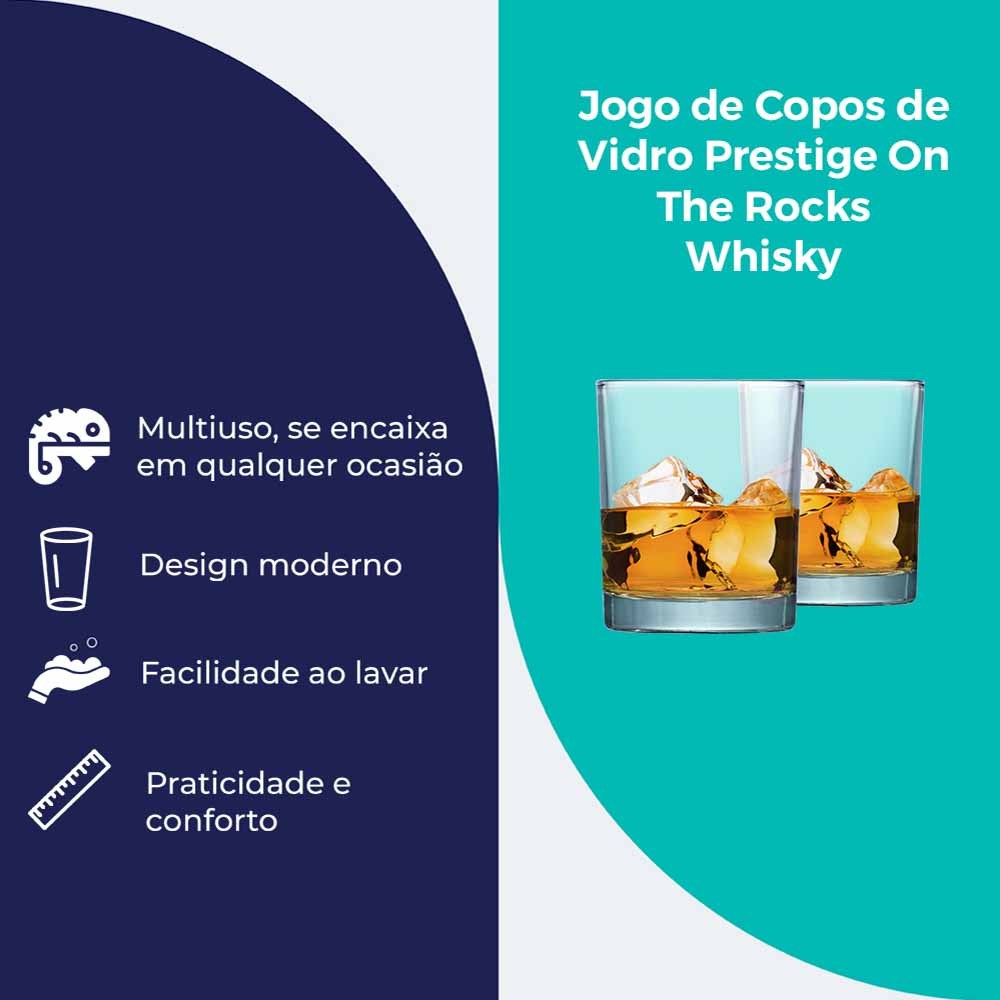 Copo On The Rocks Para Whisky, Copos de Vidro Prestige, 340ml - Ruvolo