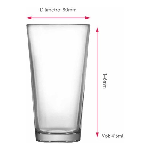 Jogo de Copos de Vidro Conic Mix para Água e Suco 415ml, 6 pcs - Ruvolo