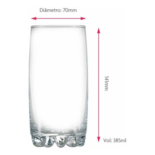 Jogo de Copos de Vidro Riviera Long Drink Para Água e Suco 385ml 6 Peças Multiuso - Ruvolo
