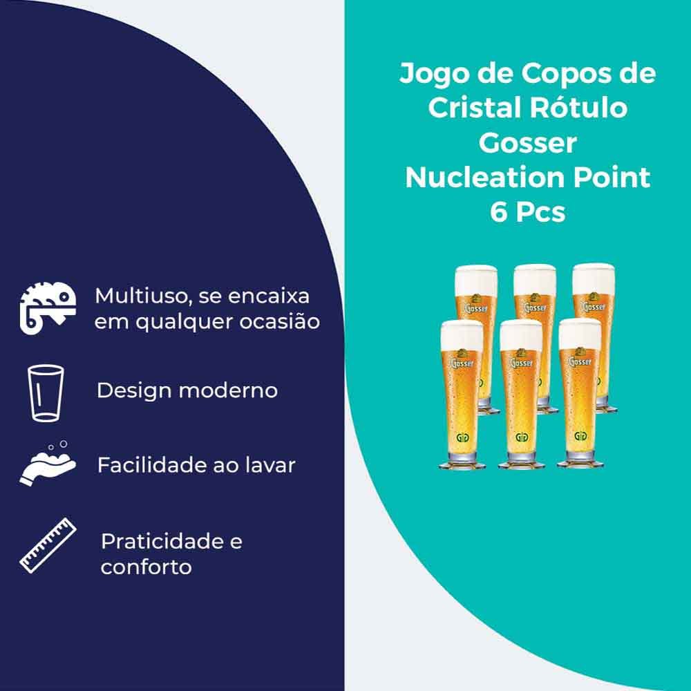 Copo Para Cerveja Gosser Nucleation Point, Copo De Vidro Para Cerveja 6 Peças, 400ml - Ruvolo