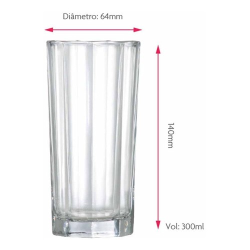Jogo de Copos de Vidro Octon Para Água e Suco 300ml, 6 pcs - Ruvolo