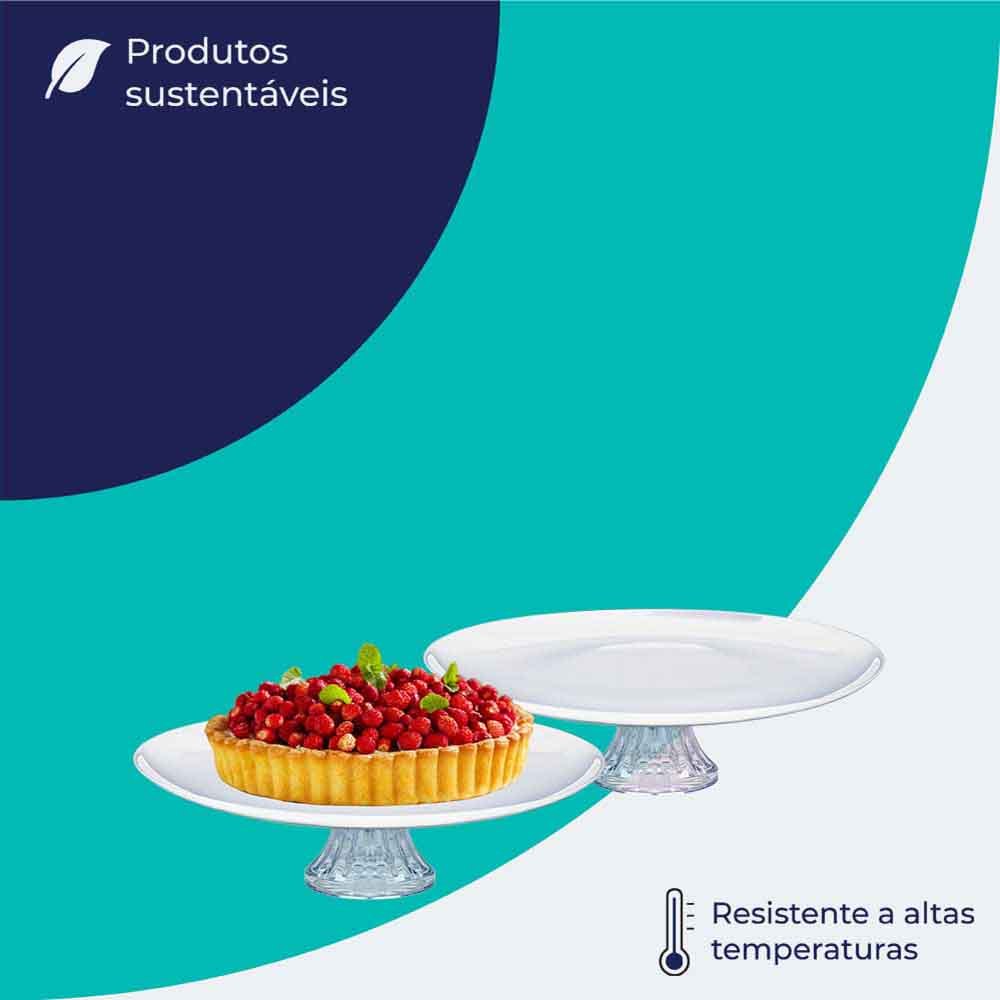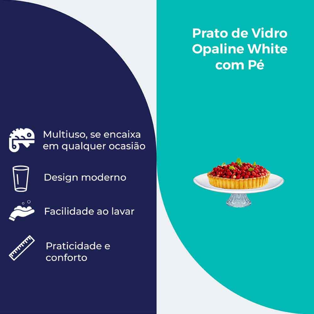 Prato de Vidro Opaline White, Prato de Sobremesa com Pé - Ruvolo