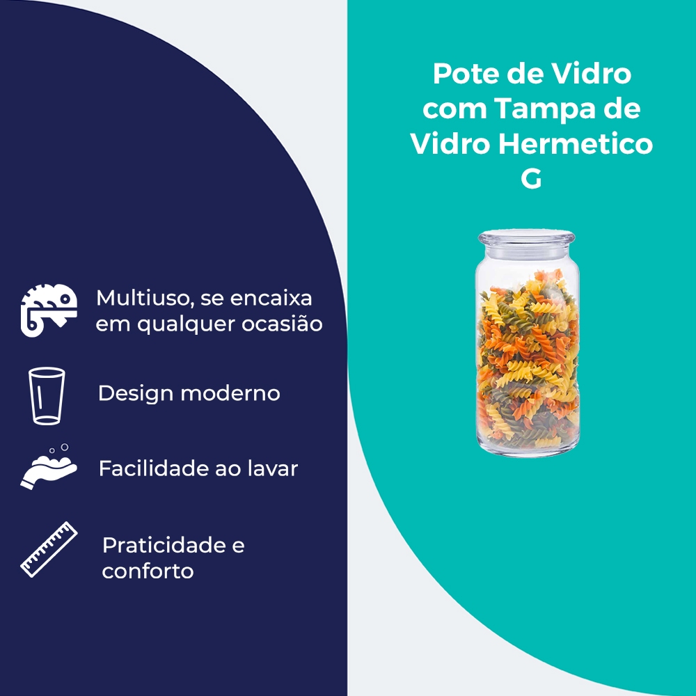 Pote de Vidro com Tampa, Pote Hermético Mantimentos Grande 1,325L - Ruvolo