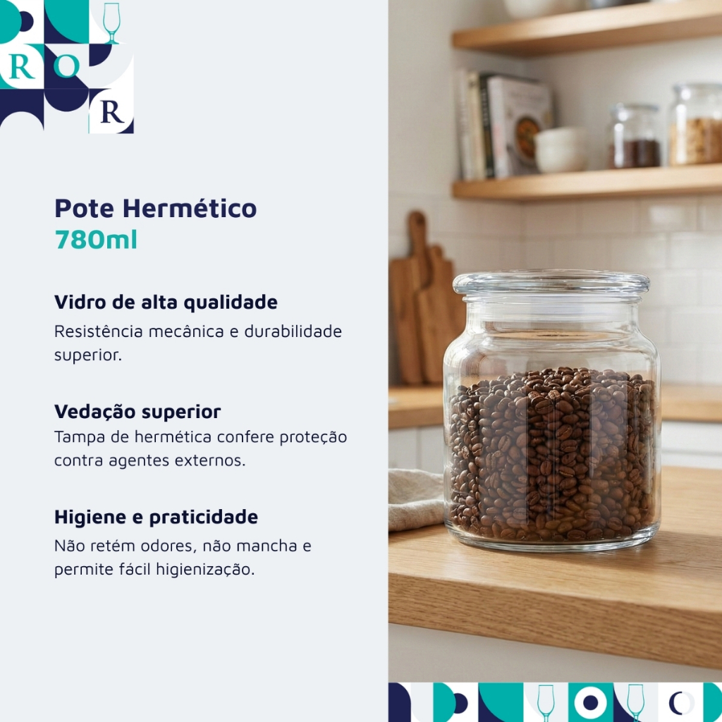 Pote Vidro Hermético Tampa Recipiente Porta Mantimentos Temperos Sementes Castanhas 780ml Ruvolo
