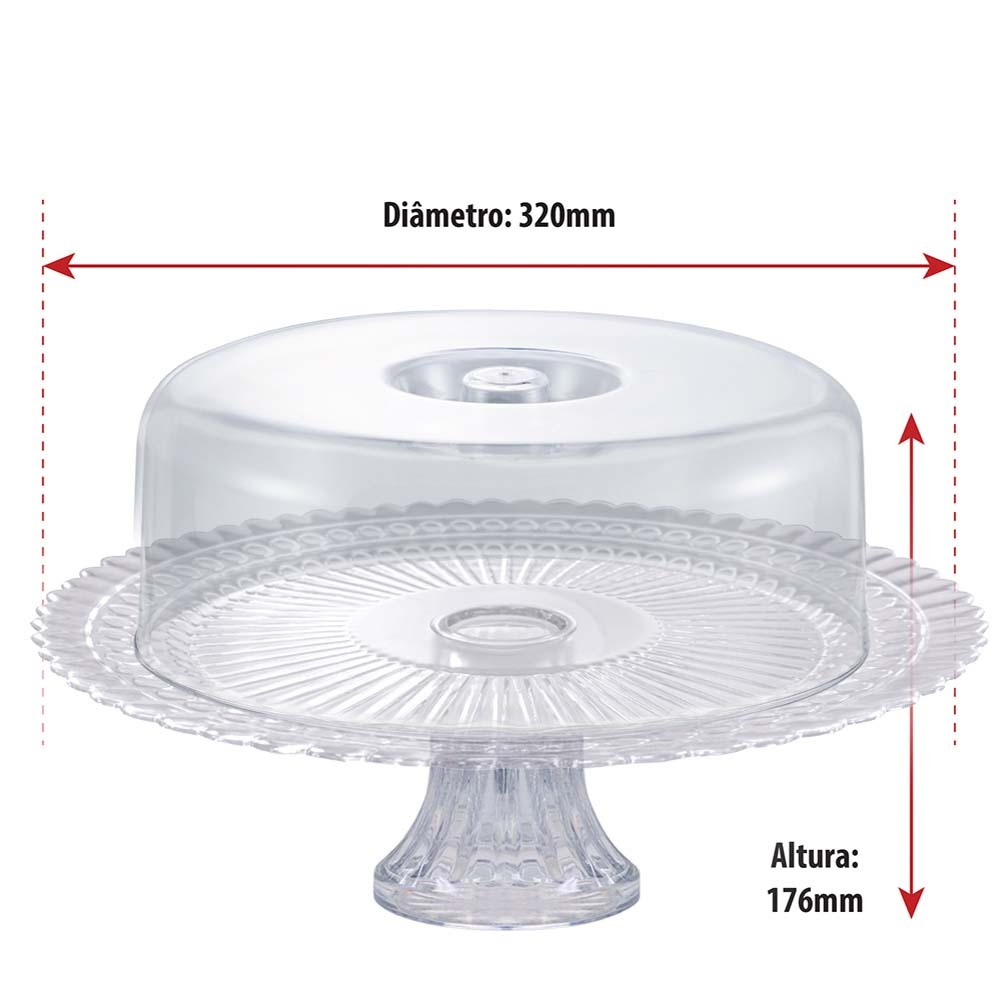 Boleira de Vidro Com Pé e Tampa Acrílica Gourmet Suporte Para Bolo, Doces e Sobremesas - Ruvolo