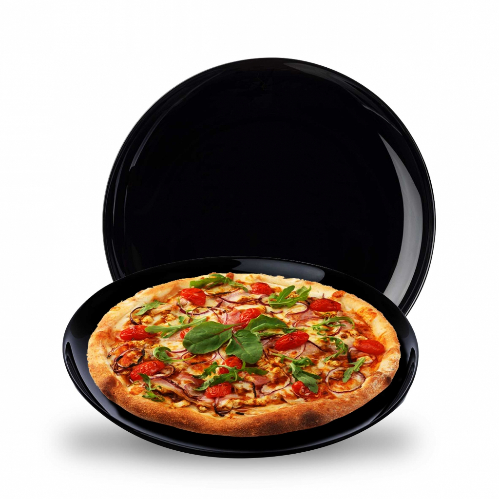 Jogo de Pratos de Vidro Preto Raso 32cm Opanile Redondo 2 Pcs para Bolo/Pizza