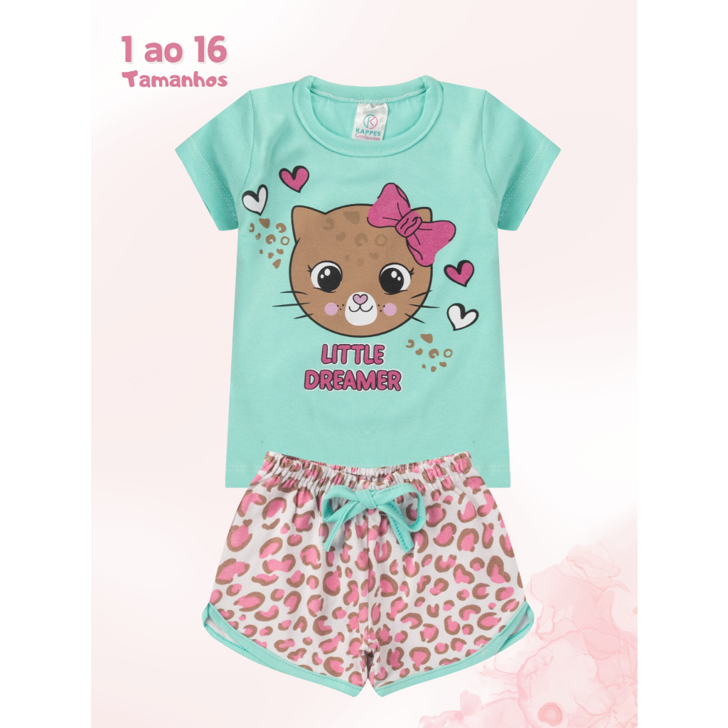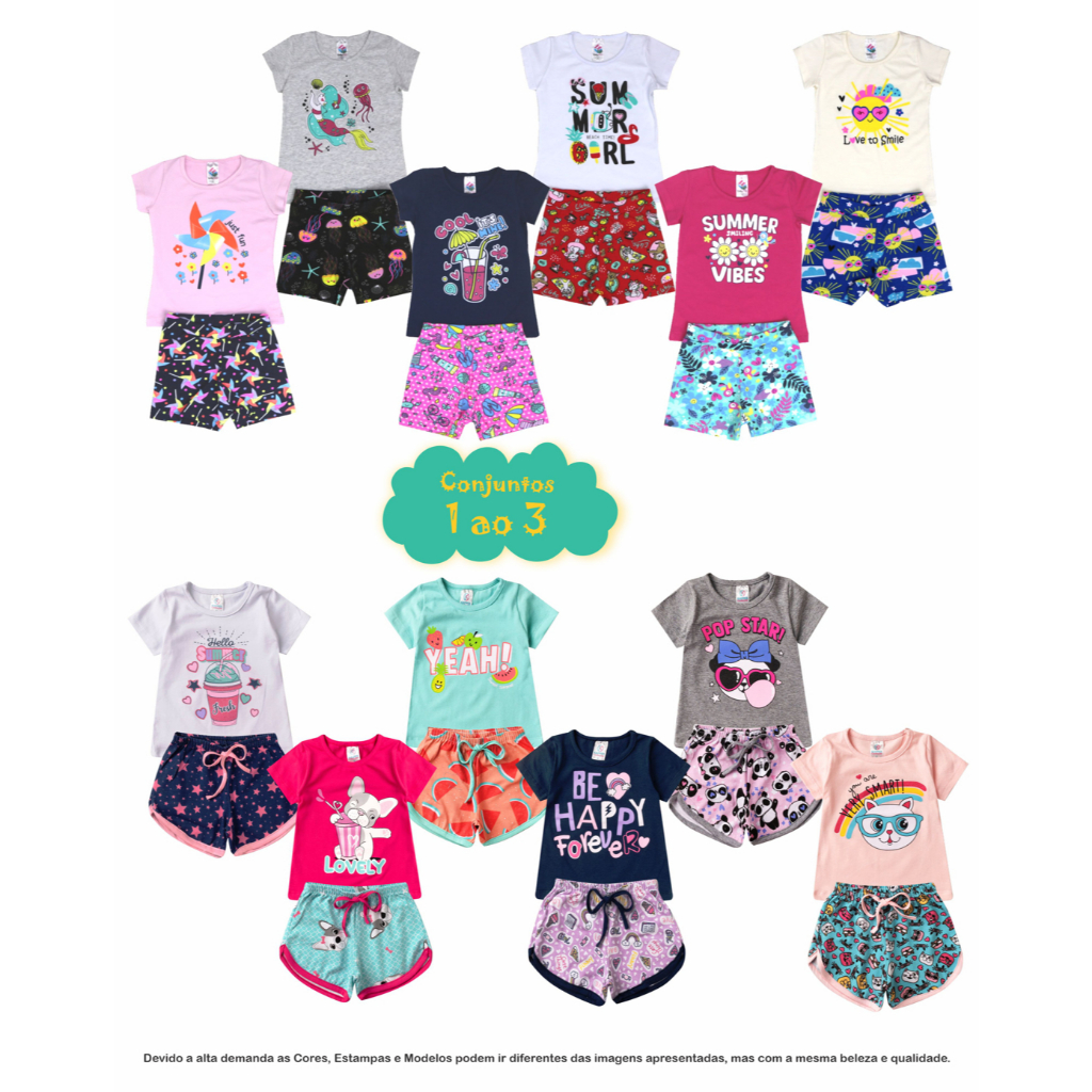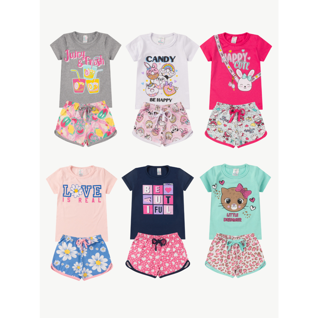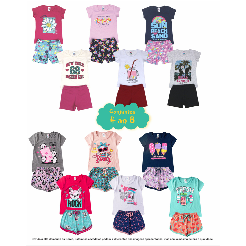 Conjunto infantil Menina 2 peças BÁSICO 1 ao 16 Verão em Cotom blusa e shorts