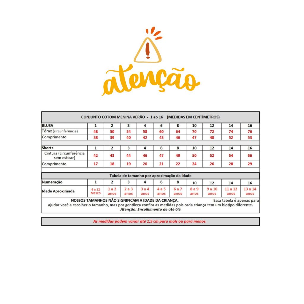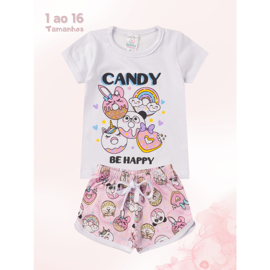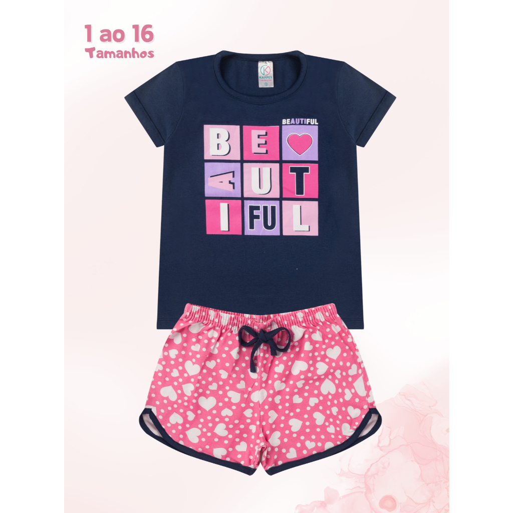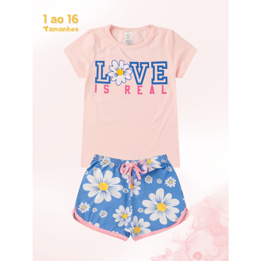 Conjunto infantil Menina 2 peças BÁSICO 1 ao 16 Verão em Cotom blusa e shorts