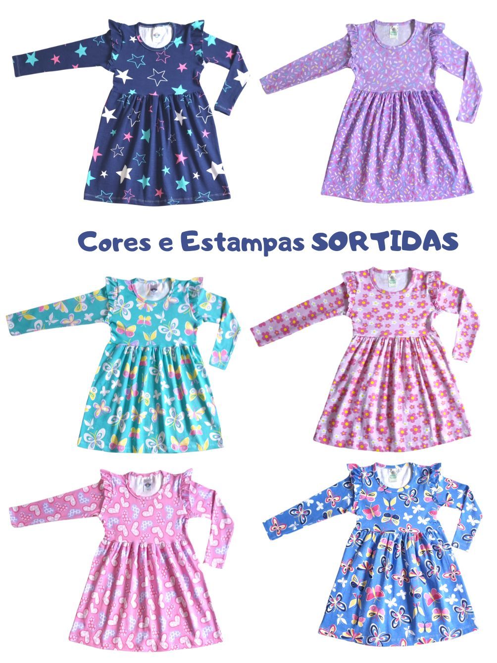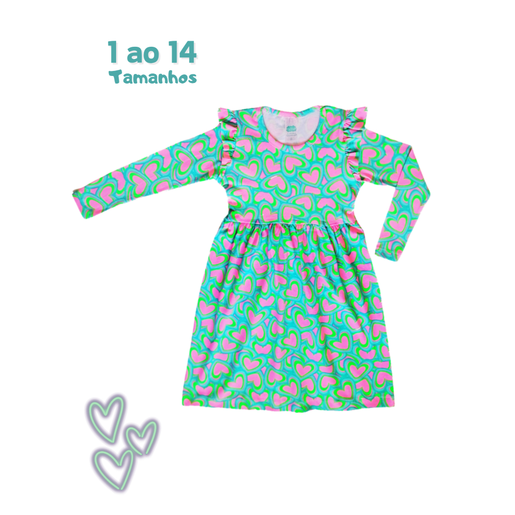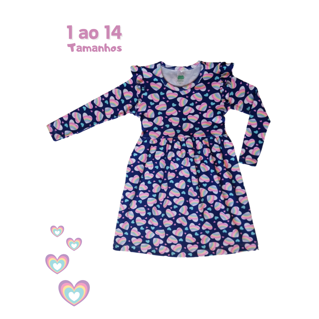 Vestido Princesa Meia Estação infantil 1 ao 14 Manga Longa em Cotom Estampado