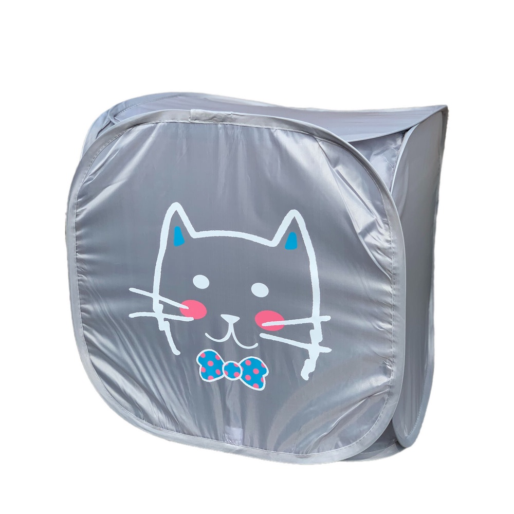 Cesto Dobravel De Nylon Com Tampa Bichinhos 45x45cm