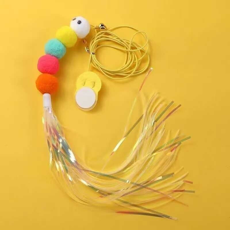 Brinquedo para Gatos Pendurado com Lagarta e Sino, Elástico Ajustável para Porta, Autodiversão