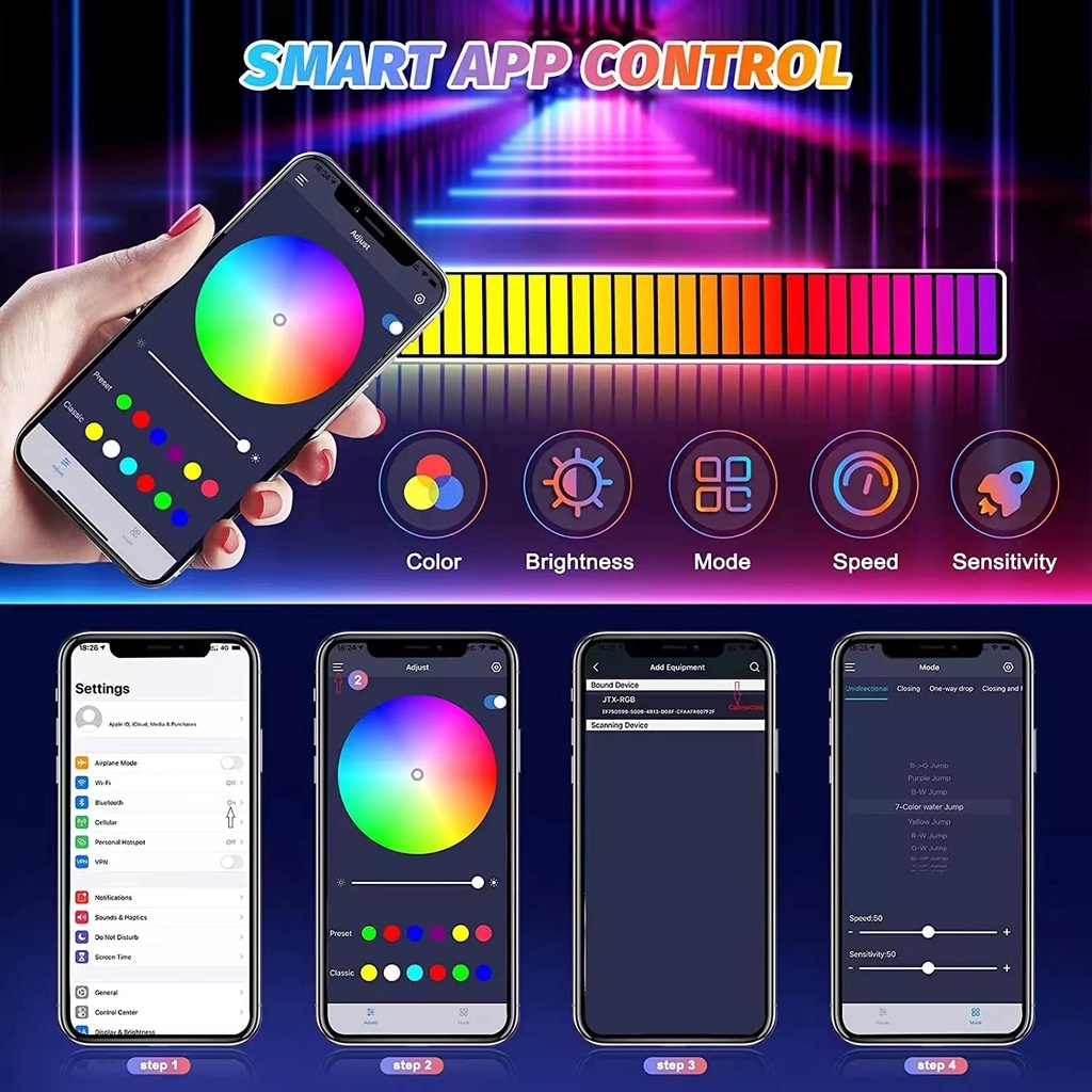 Barra Torre De Led Rítmica Rgb Sensor De Som+ 18 Modos Gamer