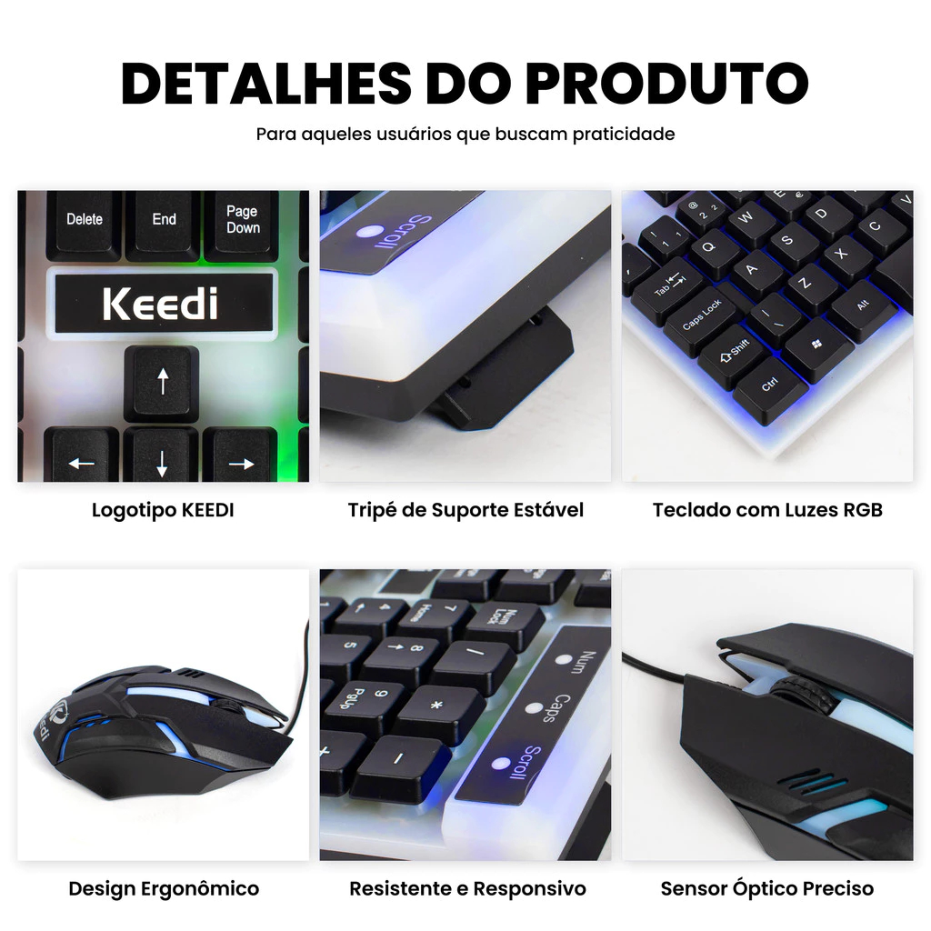 Kit Teclado Mouse Gamer KEEDI-TEC800 Membrana LED USB Preto