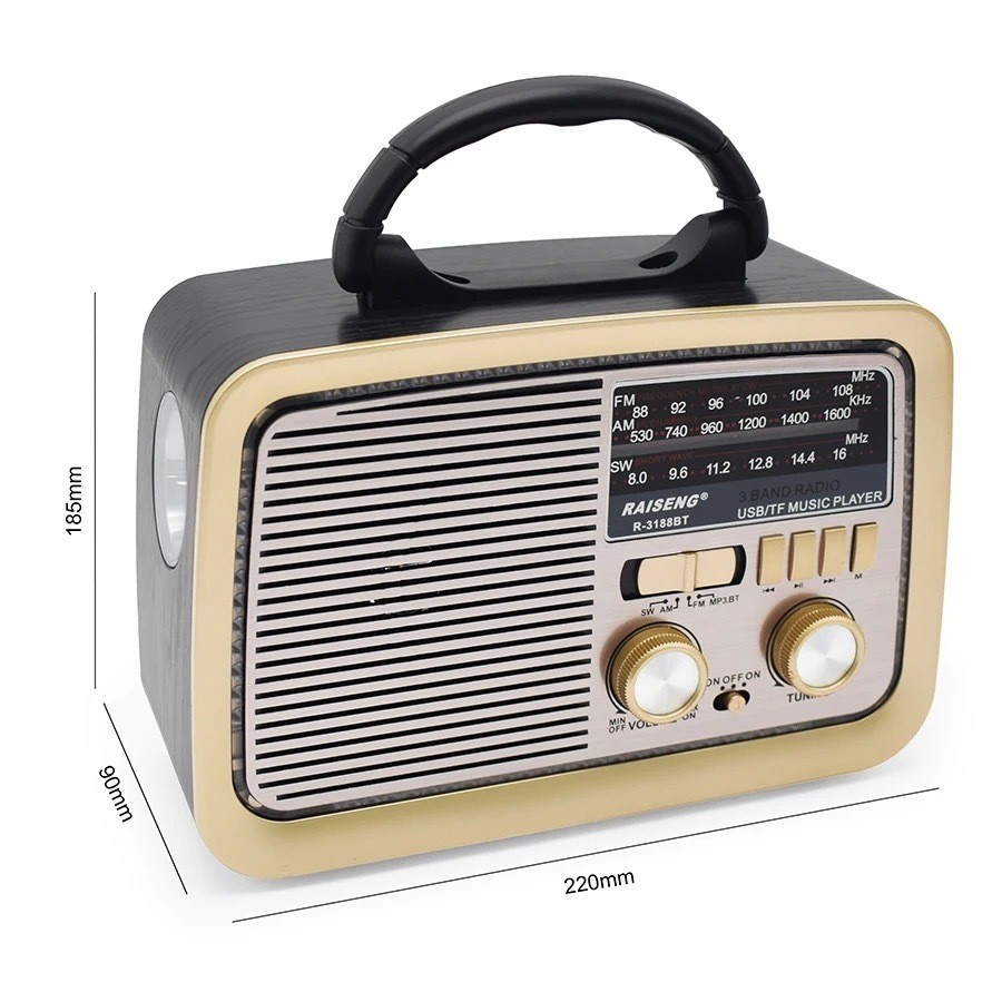 Rádio Portátil Retro Recarregável Am/fm Bluetooth Lanterna Cor Marrom