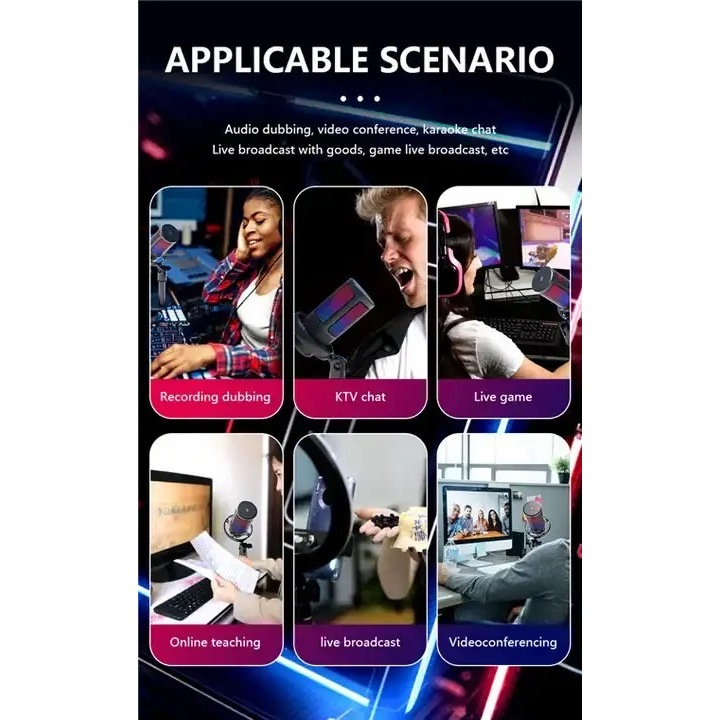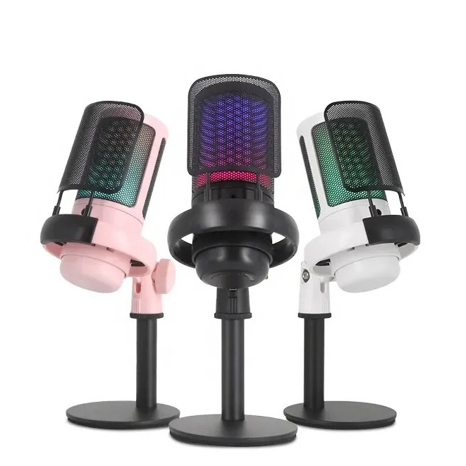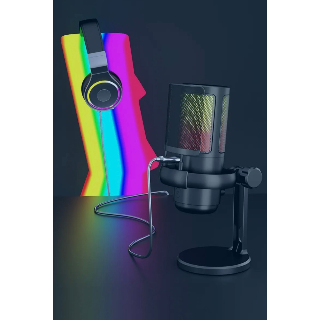 Microfone Condensador RGB Gamer USB-C Cabo 1.8 Metros
