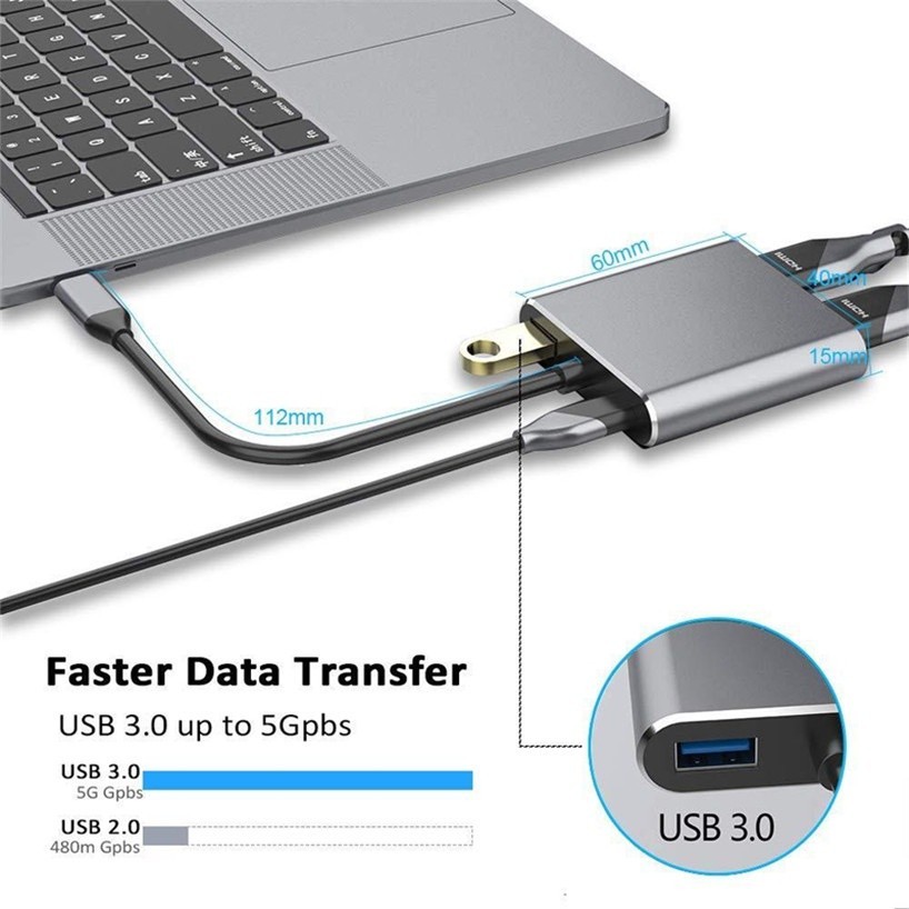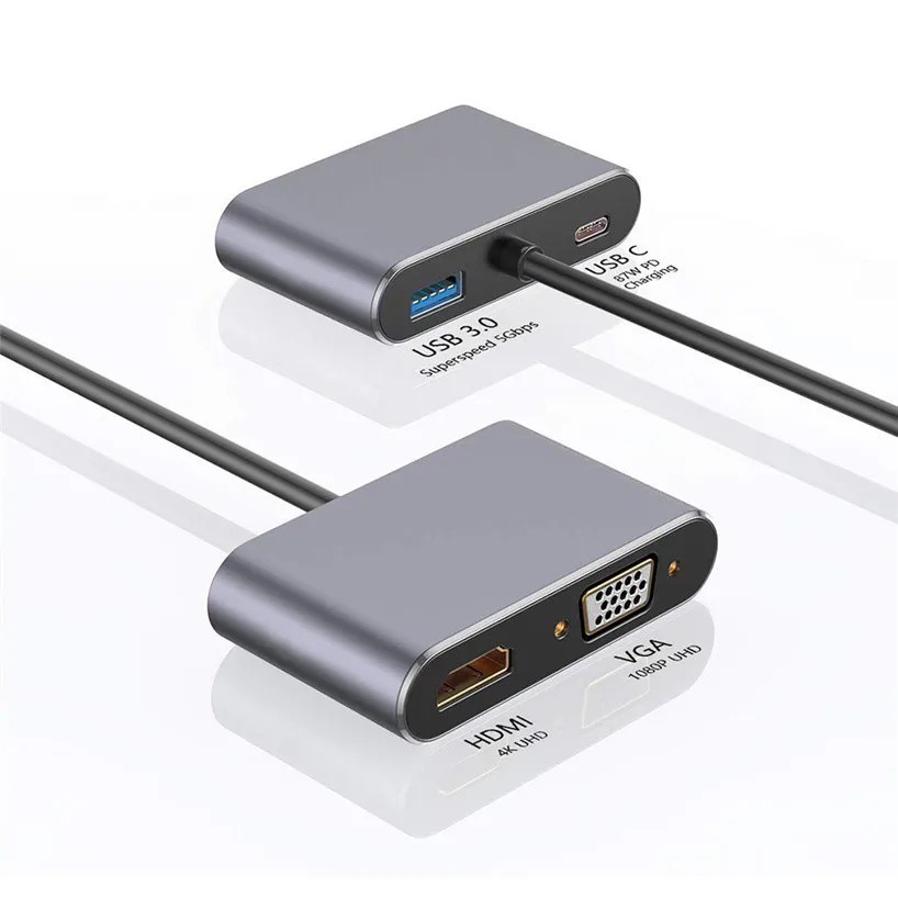 Adaptador Usb 3.0 Tipo C Hdmi 4k Vga 5 In1 Para Macbook Otg