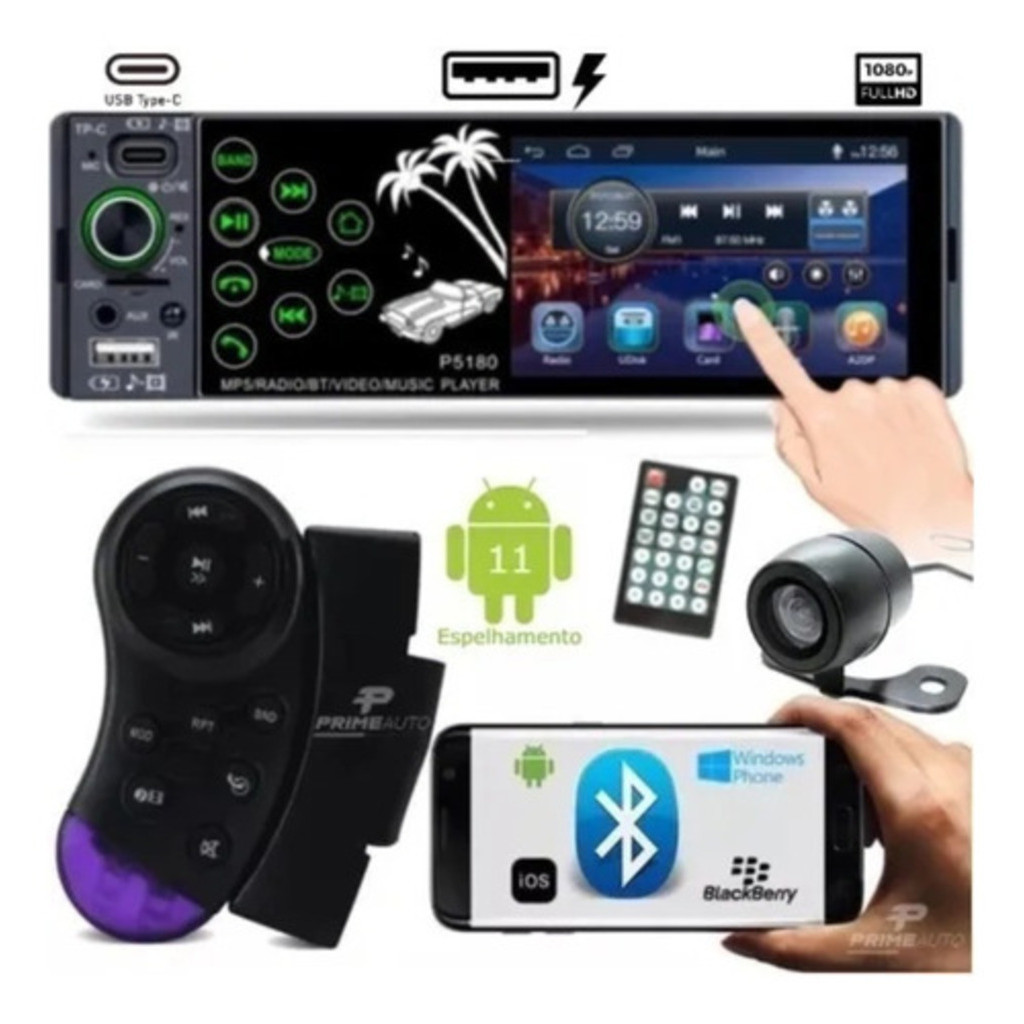 Som Automotivo MP5 KP-RA903 Tela 4.3" Bluetooth Aux C/ Comando Volante