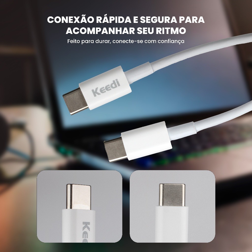 Cabo de Dados de Transferência e Carregamento Rápido Tipo C 65W Keedi CB003C