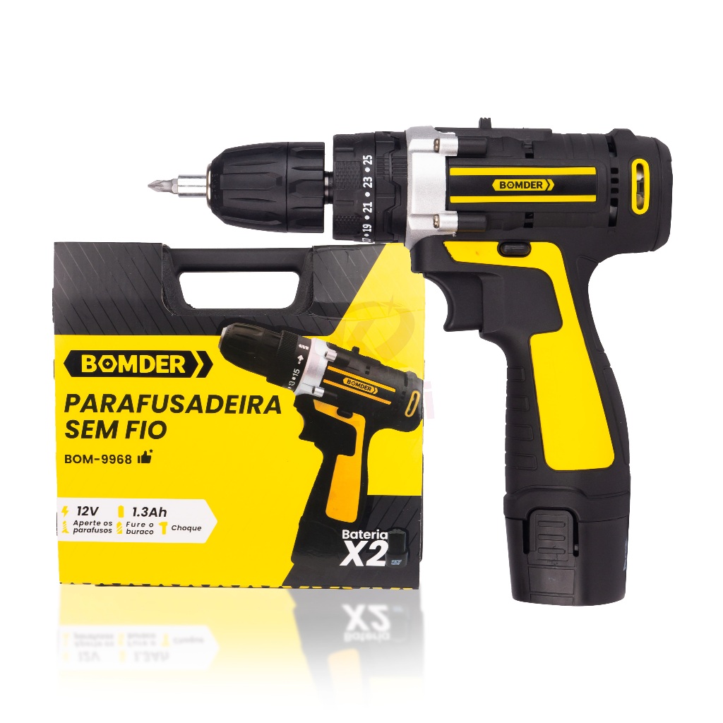 Parafusadeira Sem Fio De 12v, 1350 Rpm Bomvink 2 Baterias BOM-9968