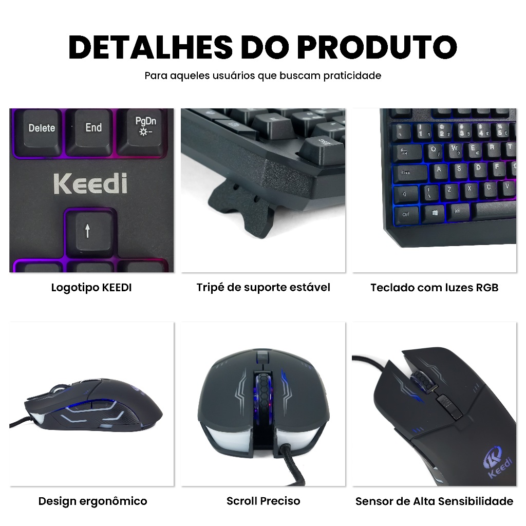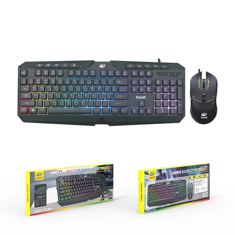 kit Teclado Mouse RGB Multimídia 10 Teclas Keedi TEC801