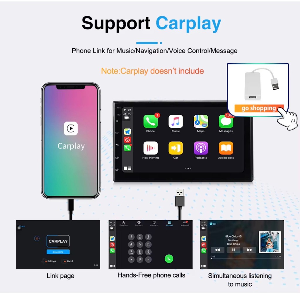 Central Multimídia CarPlay Touch Wi-Fi 1080p USB Android Auto Knup KP-RA922