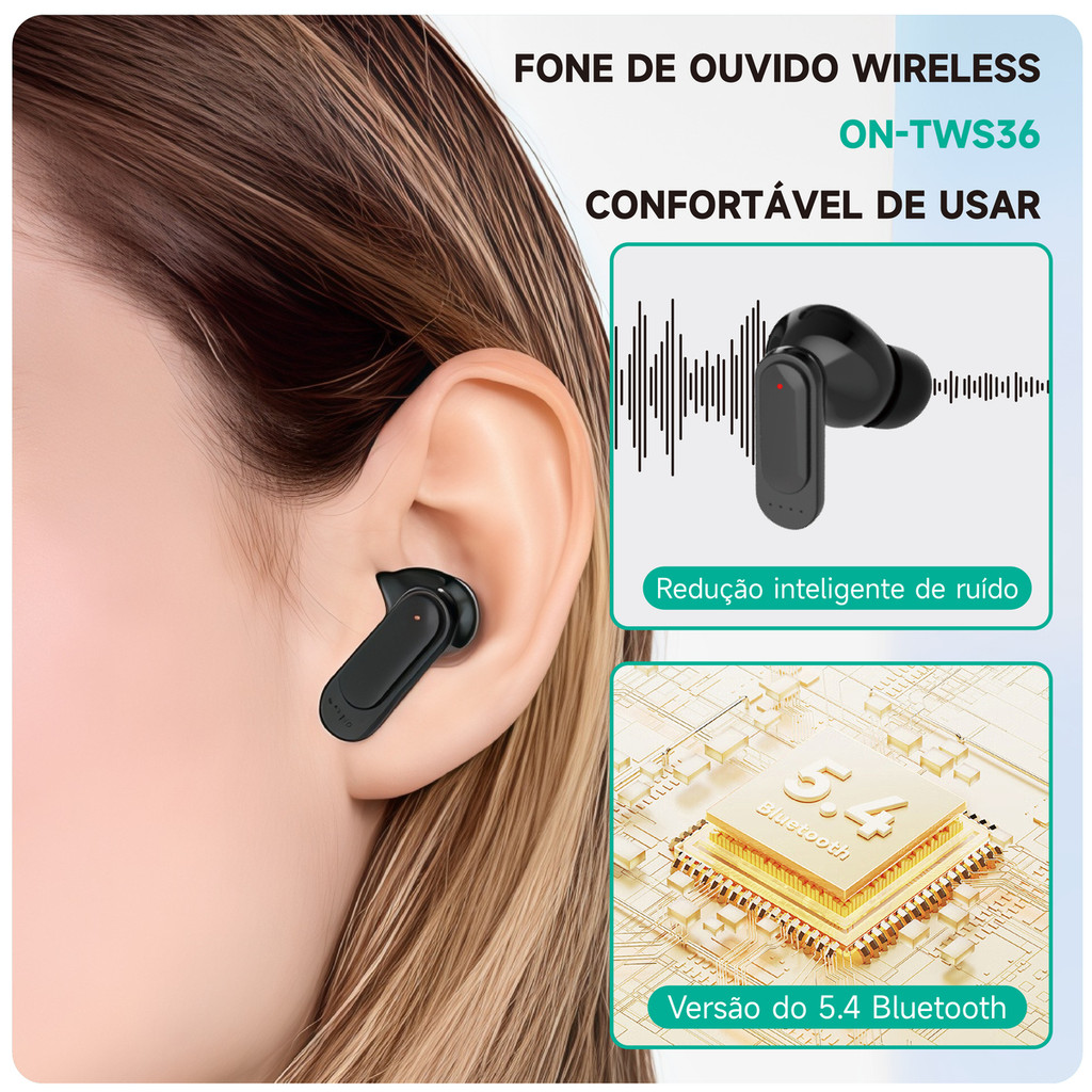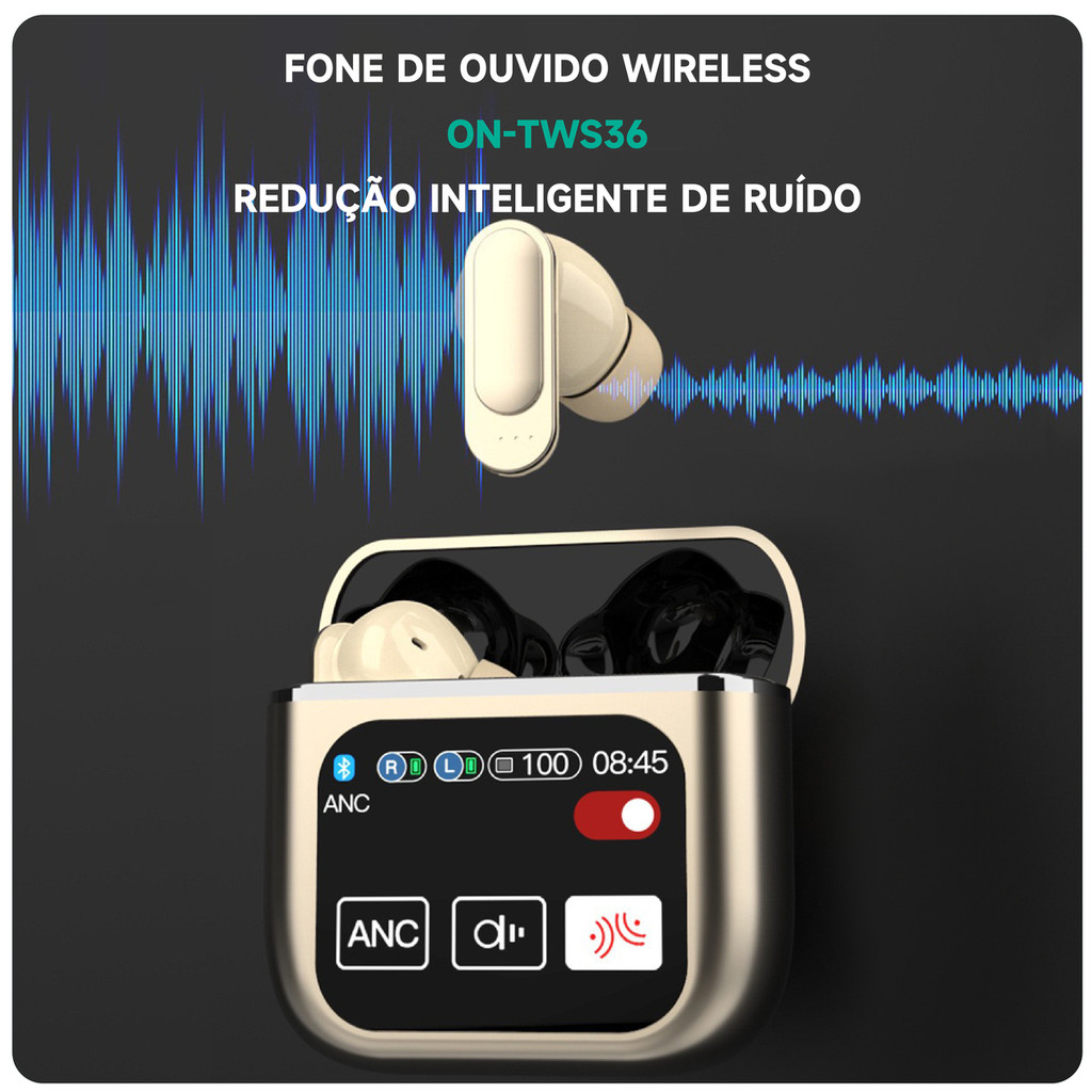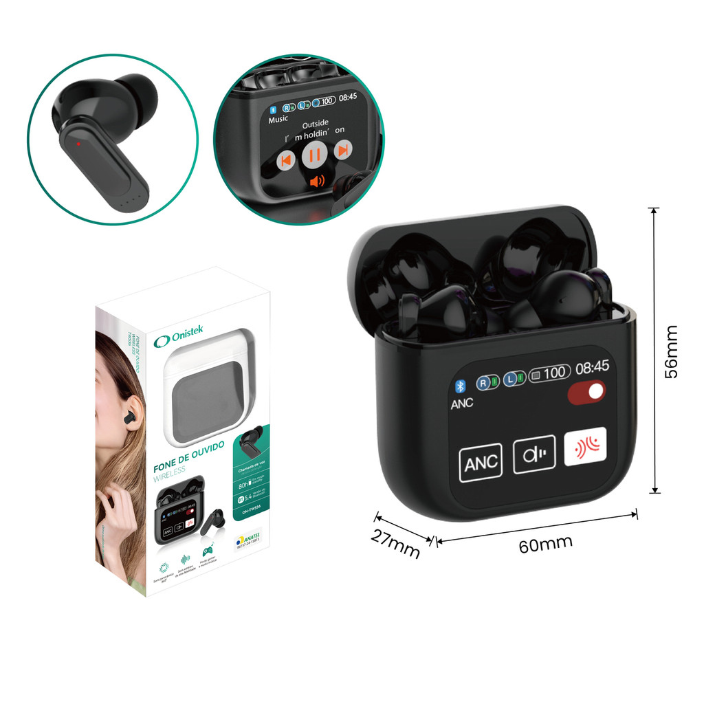Fone de Ouvido Bluetooth Sem Fio com Tela Display Chamada Player de Música Earbuds Onistek ON-TWS36