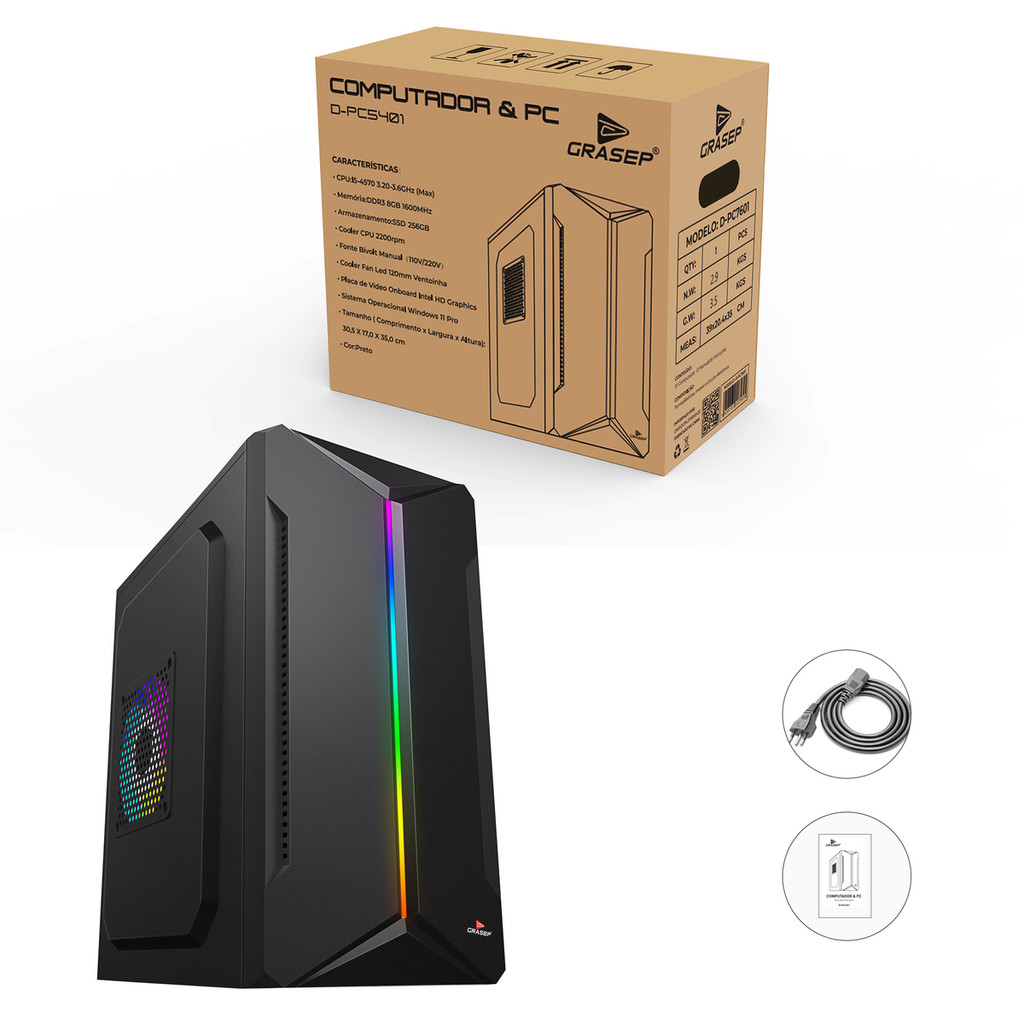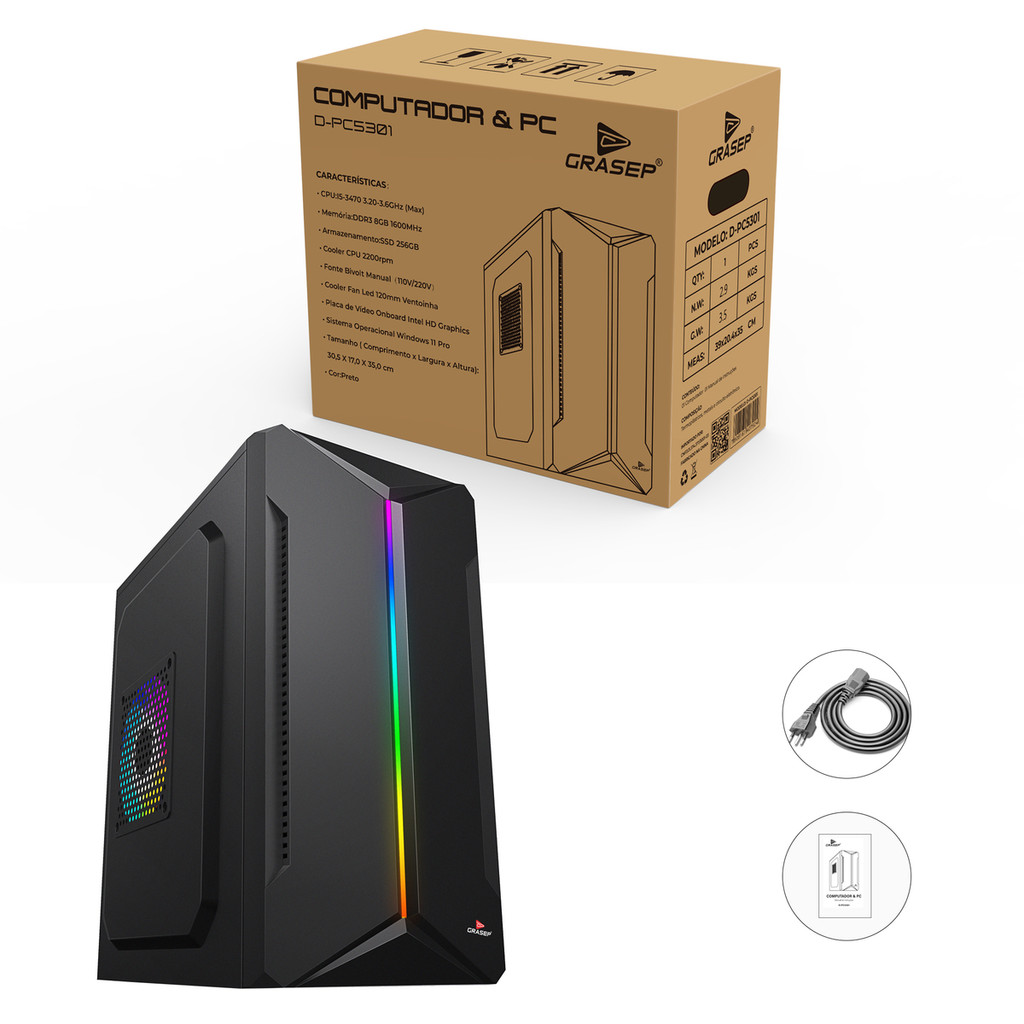 Computador Intel i5 SSD 256GB 8GB PC Gabinete Completo CPU Escritório Grasep