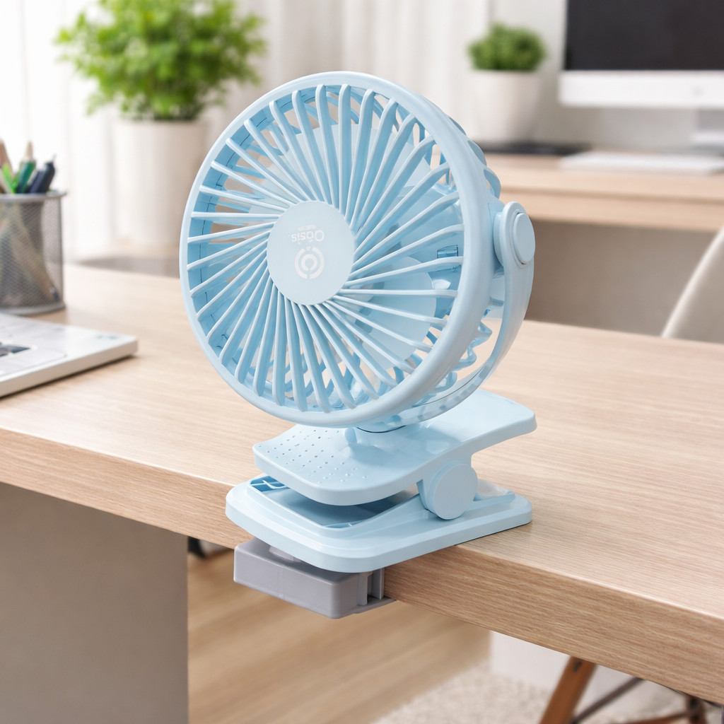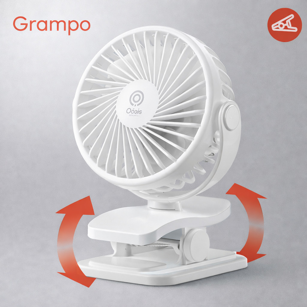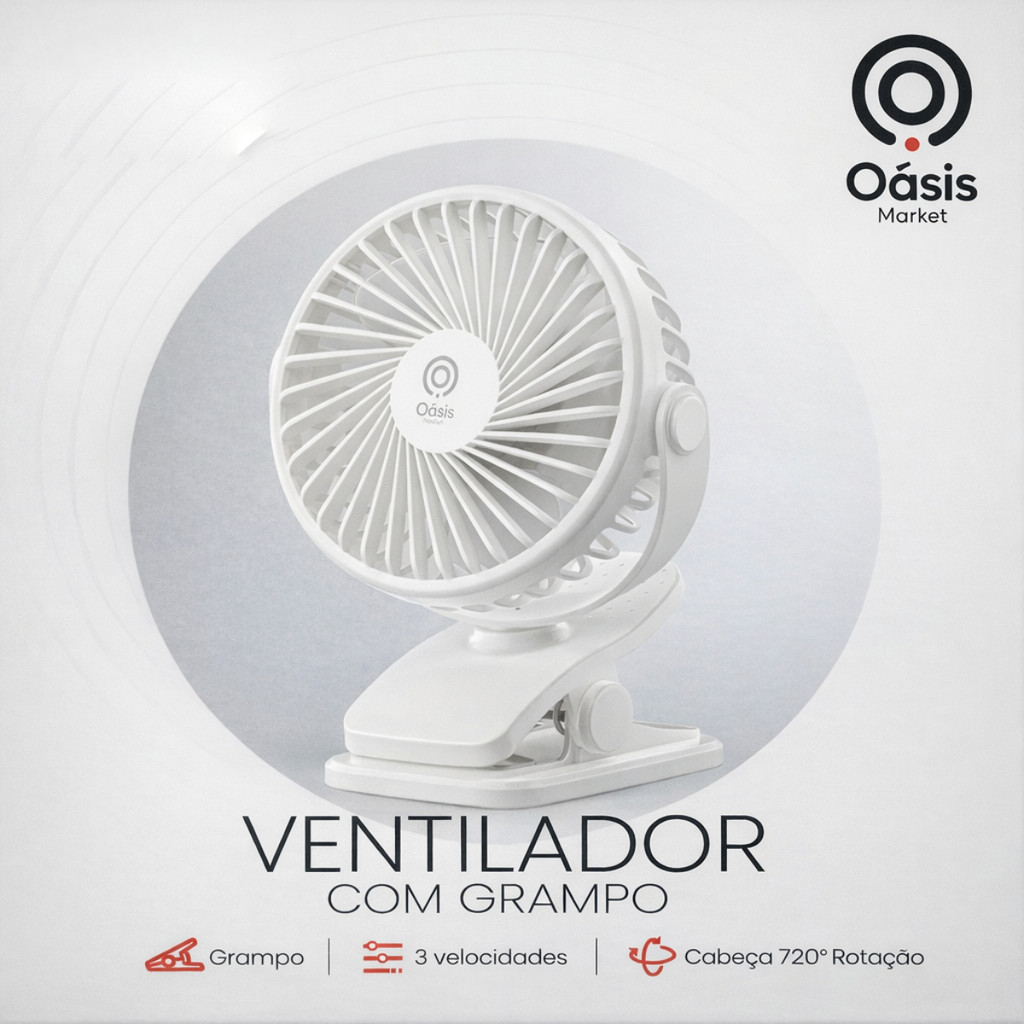Ventilador Portátil Clip para Mesa Recarregável 3 Velocidades Silencioso Compacto