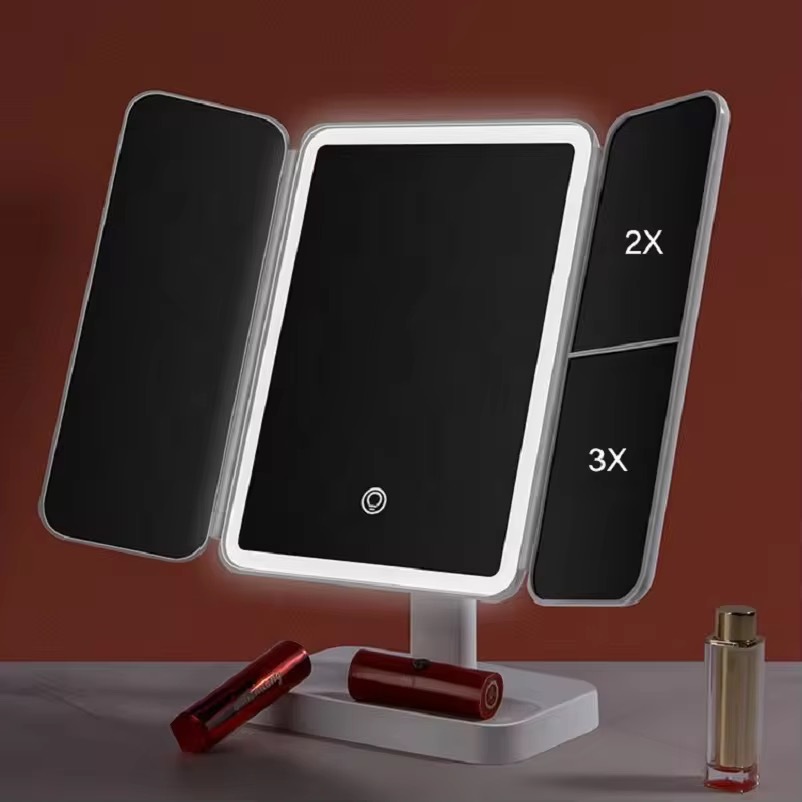 Espelho de Maquiagem Makeup 2x 3x LED Recarregável XW-810 Touch Switch 90º Ajustável
