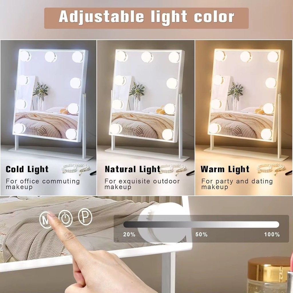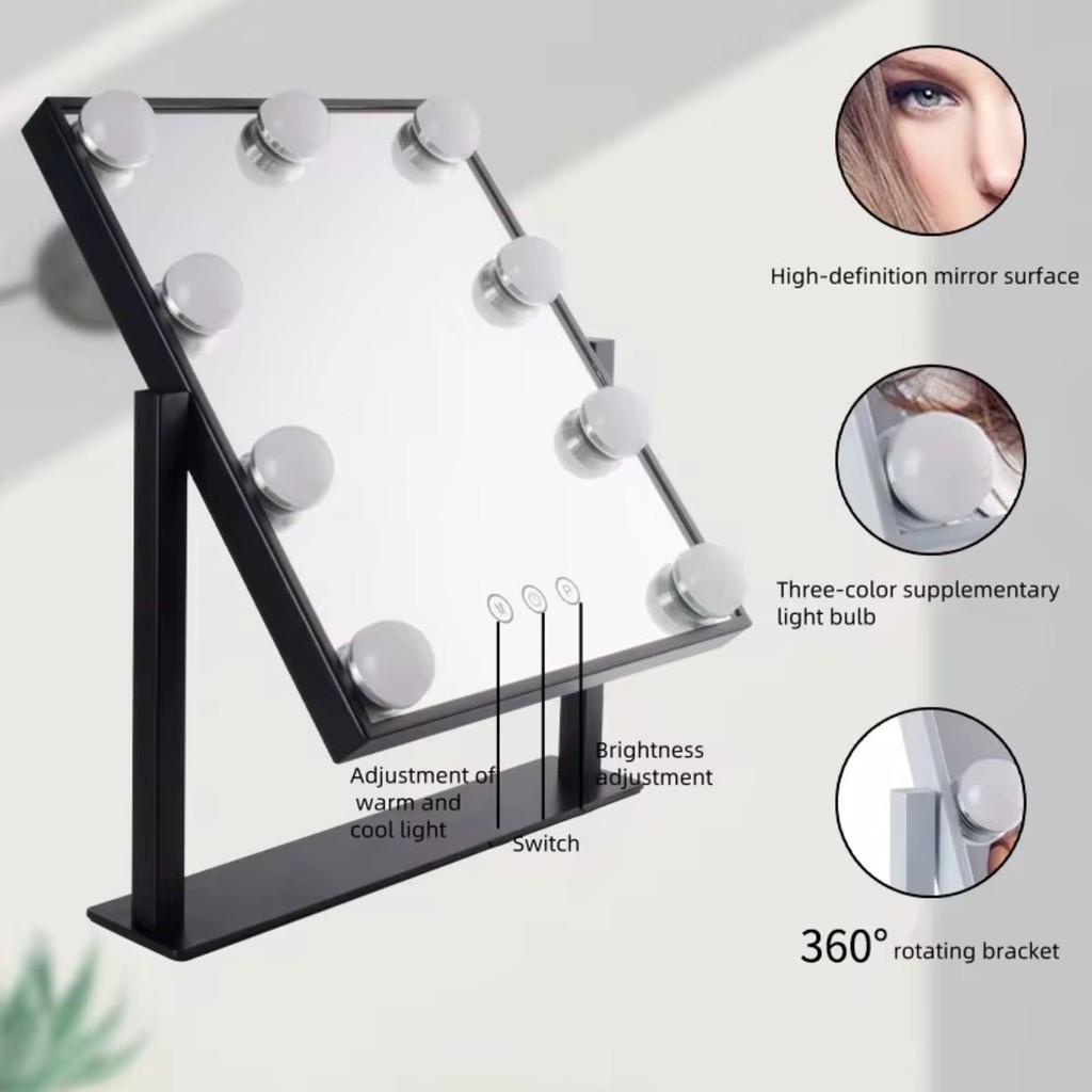 Espelho LED Maquiagem Alta Definição 9 Lâmpadas Base 360° Metal Oásis OIH-5202