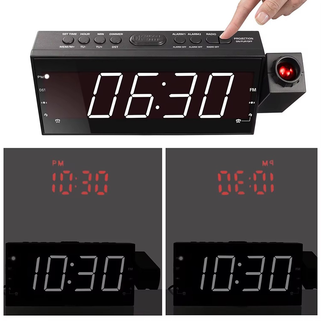 Rádio Relógio FM com Projetor e Alarme Bivolt 110v 220v Lelong LE-672