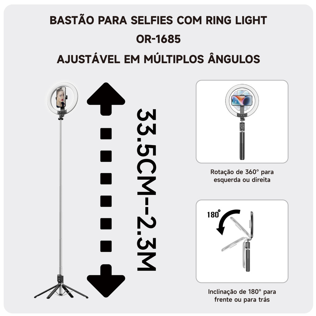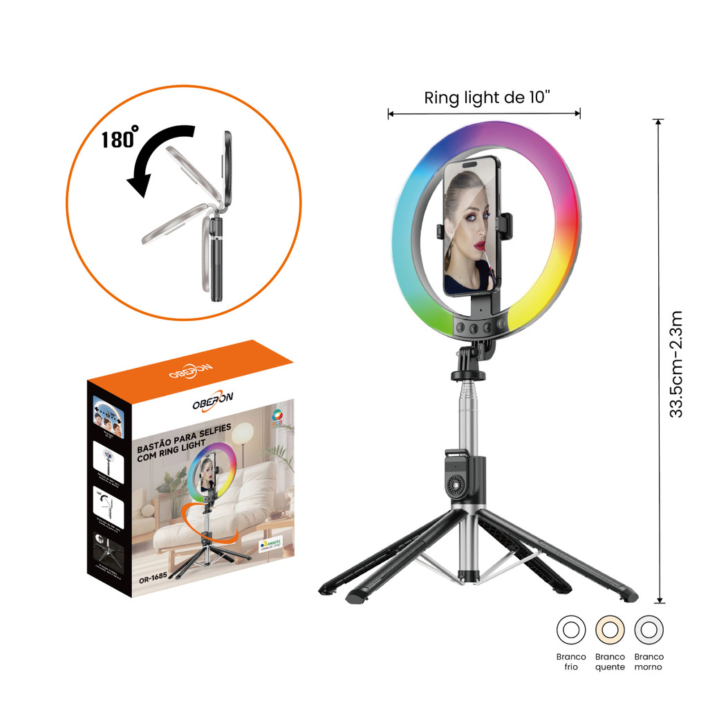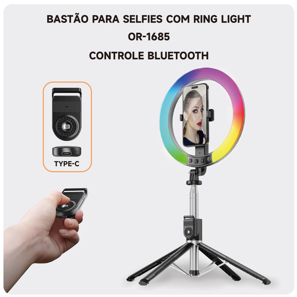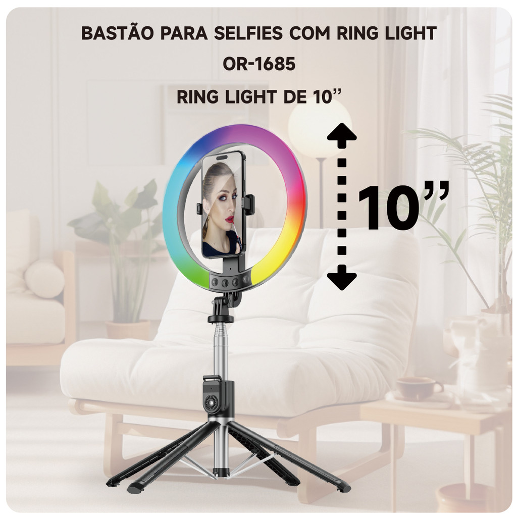 Ring Light 10 Polegadas Pau de Selife Tripé Controle Remoto Bluetooth Oberon OR-1685