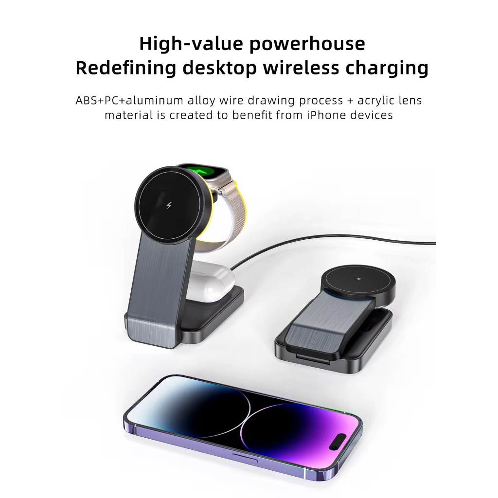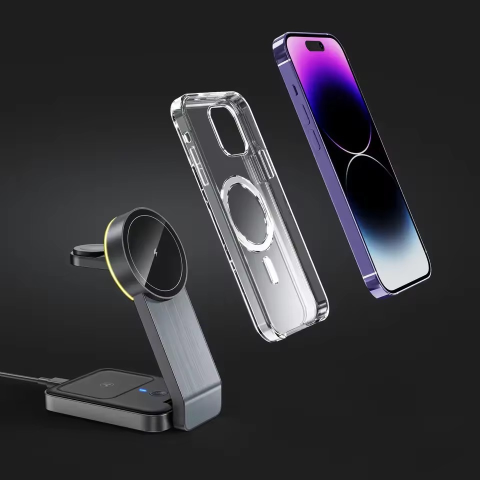 Carregador 3 em 1 Dock Com Luz Magsafe Para Celular Smartwatch Fone PEI-WS13