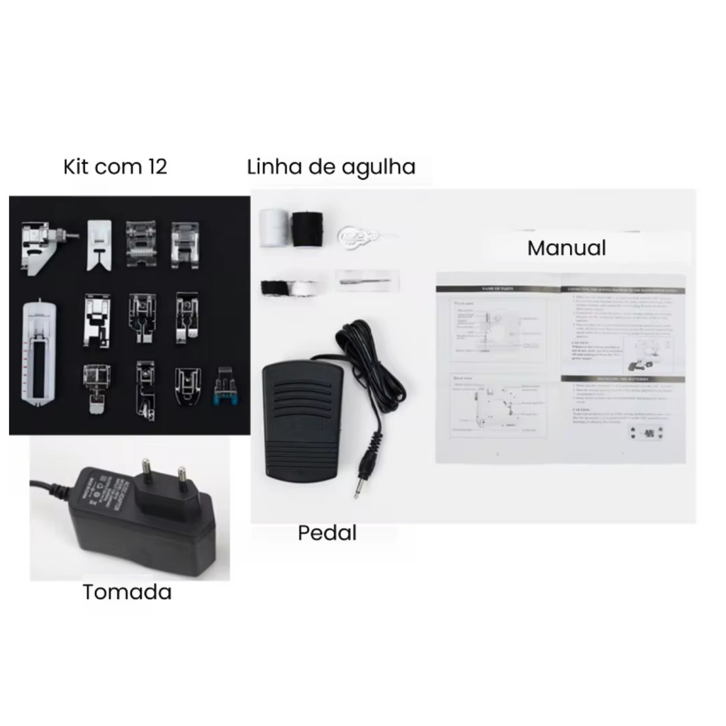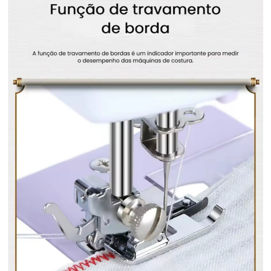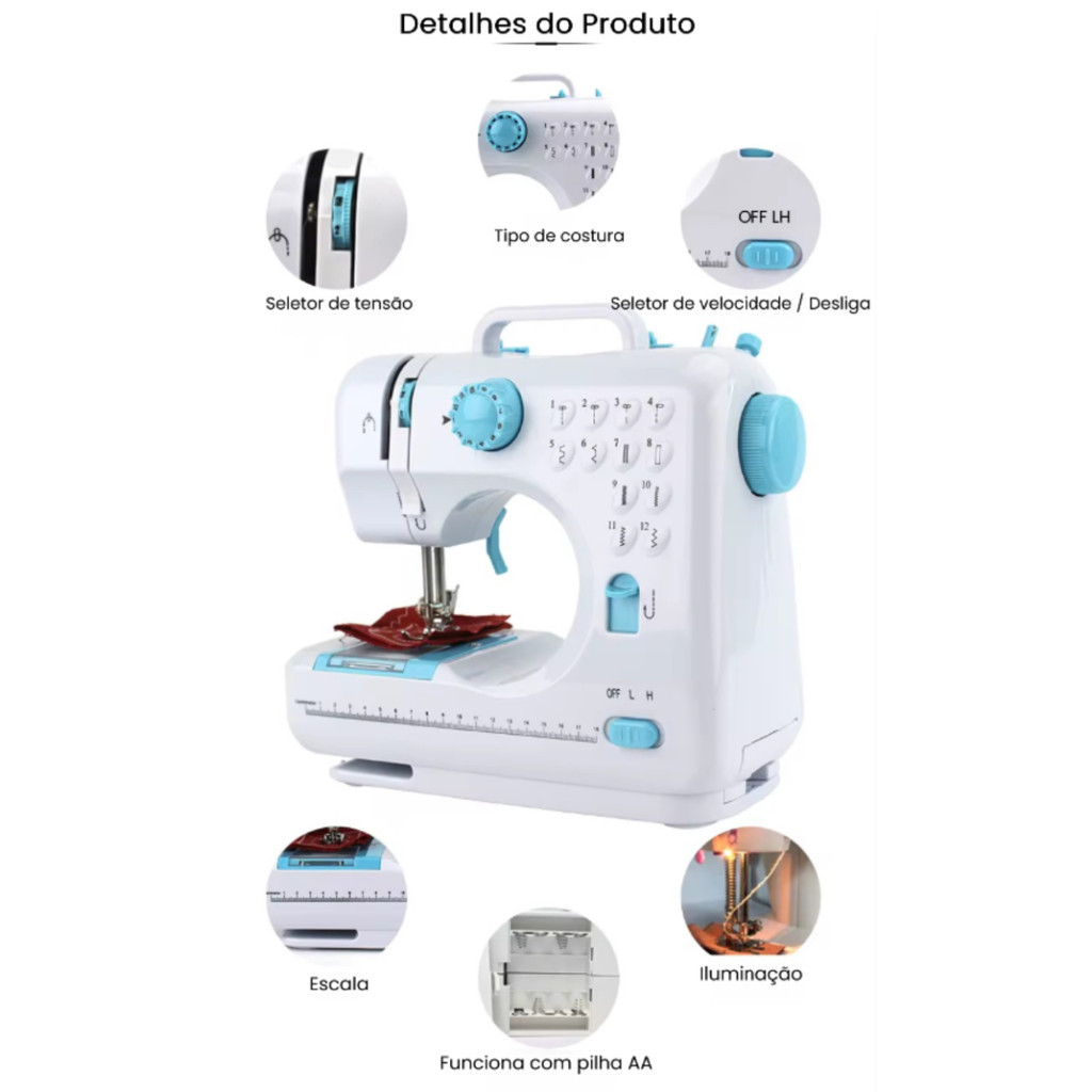 Mini Máquina de Costura Portátil Elétrica 12 Pontos Com Pedal Iluminação 110v Função Retrocesso Prática e Leve